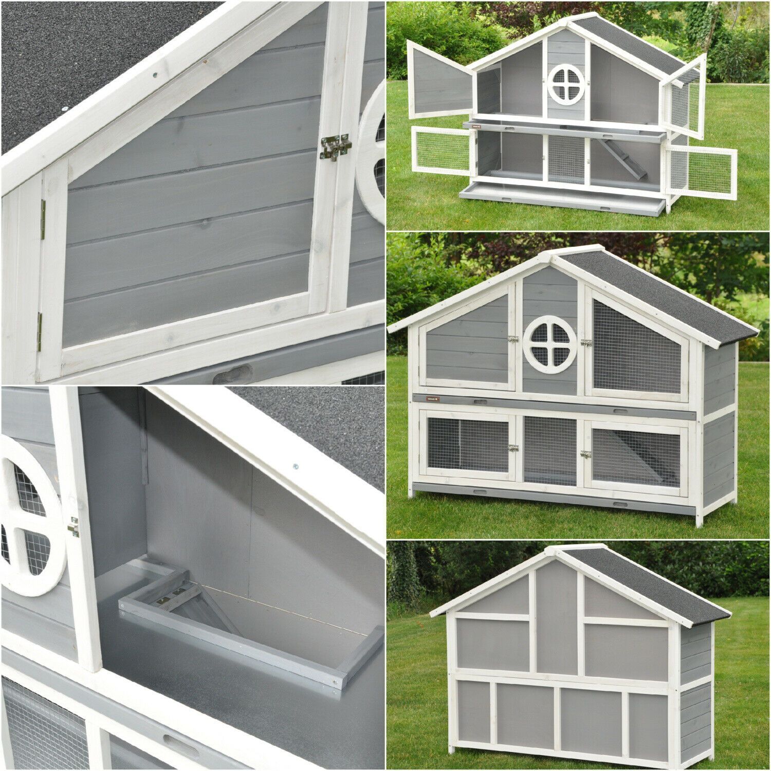 Nanook Hasenstall Kaninchenstall Hasenkäfig Gehege Meerschweinchen Momo 144 cm - grau