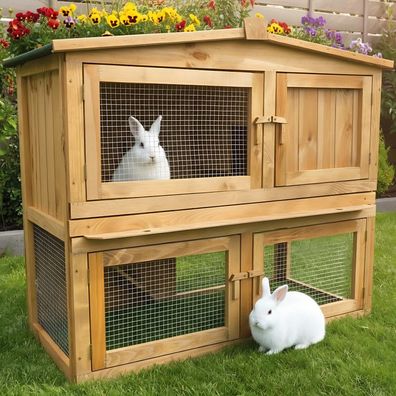• Kaninchenstall Kleintierhaus Hasenstall 3 Ebenen Holz