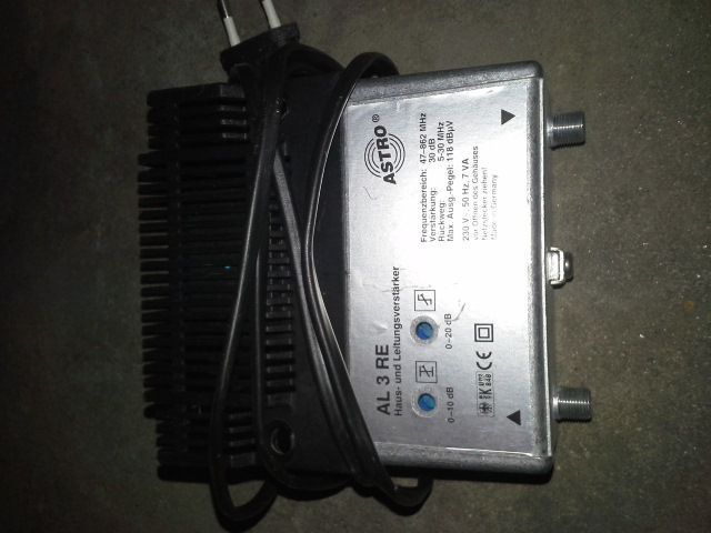 Haus- und Leitungsverstärker von ASTRO Typ AL 3RE, 30dB, F-Anschluß, gebraucht ab 5 € Versand nach Vorauskasse plus Versandkosten --> Meine Mich -Seite Bitte beachten