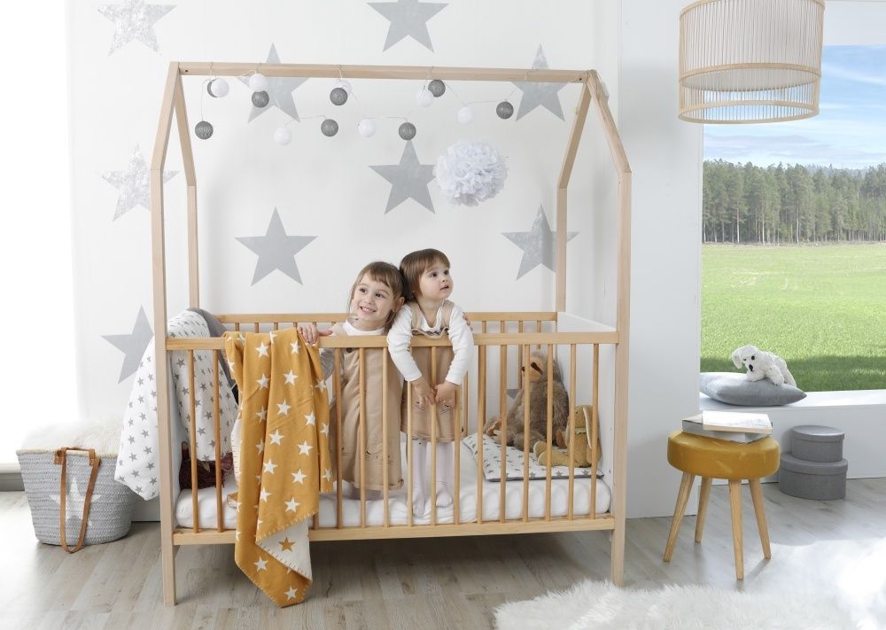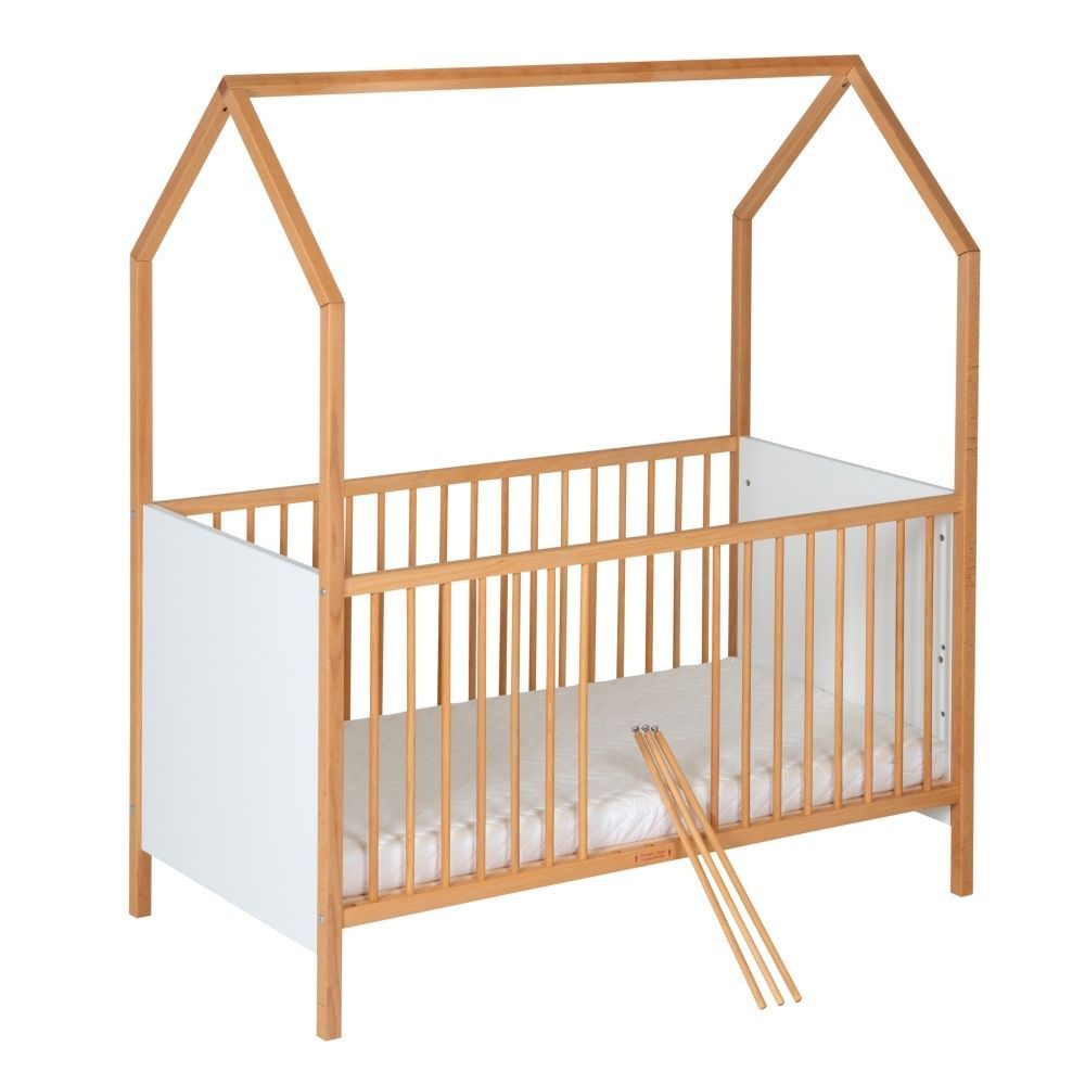 Schardt Hausbett 70x140 -Umbaubett Gitterbett Babybett Kinderbett Sprossen-Weiß/Natur
