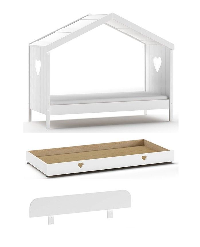 VIPACK Hausbett 90x200 Bettschublade Lattenrost Absturzschutz Kinder Einzelbett Weiß