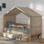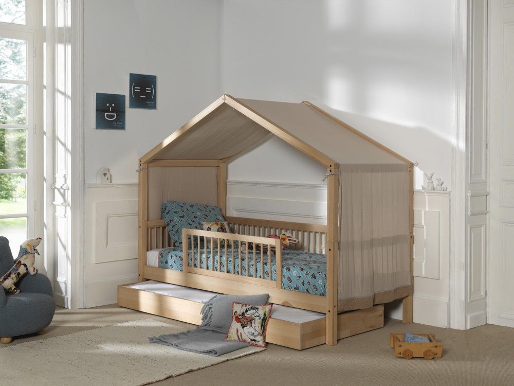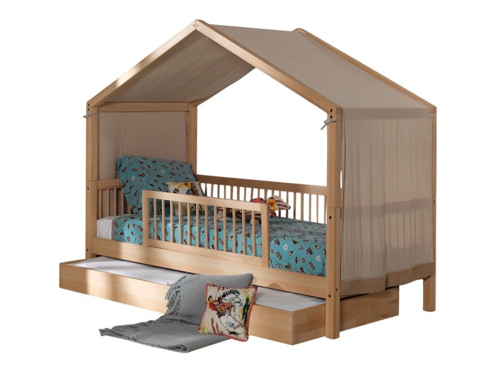 VIPACK Hausbett 90x200 Bettschublade Textilhimmel Rausfallschutz Lattenrost Buche Natur