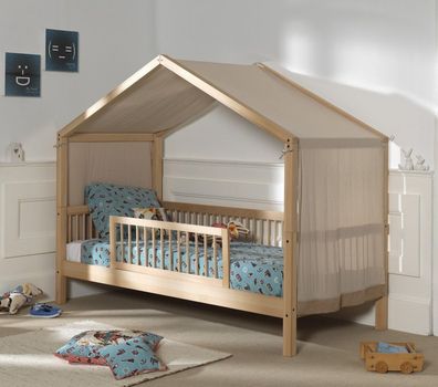 VIPACK Hausbett 90x200 mit Bettschublade Kindermöbel Lattenrost Spielbett Buche massiv