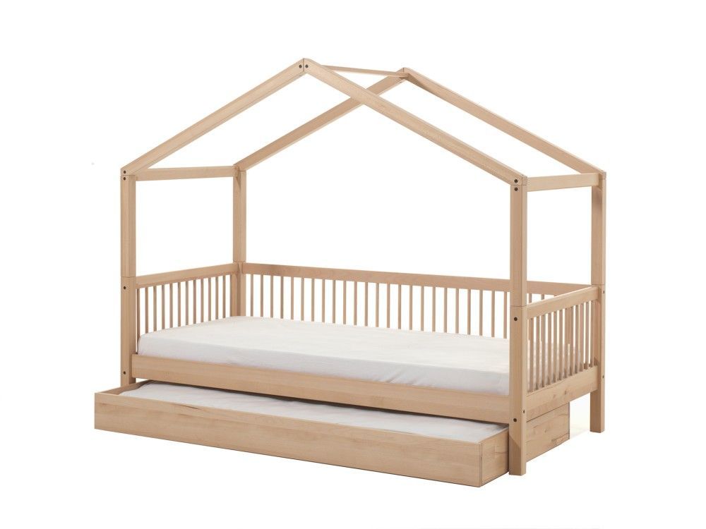 VIPACK Hausbett 90x200 mit Bettschublade Kindermöbel Lattenrost Spielbett Buche natur
