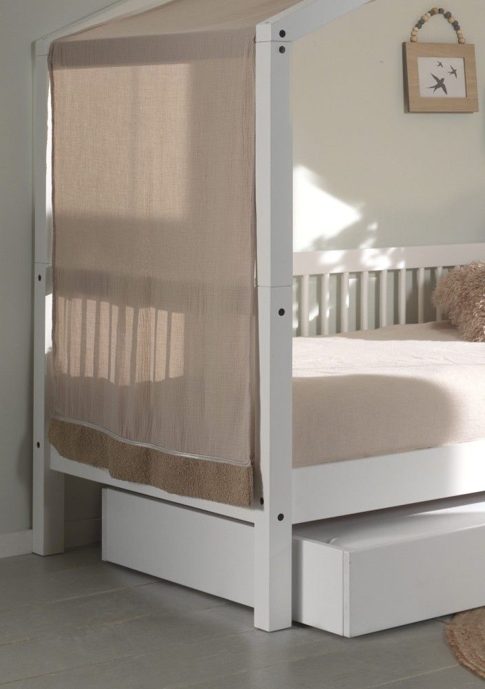 VIPACK Hausbett 90x200 mit Bettschublade Textilhimmel Lattenrost Spielbett Buche massiv