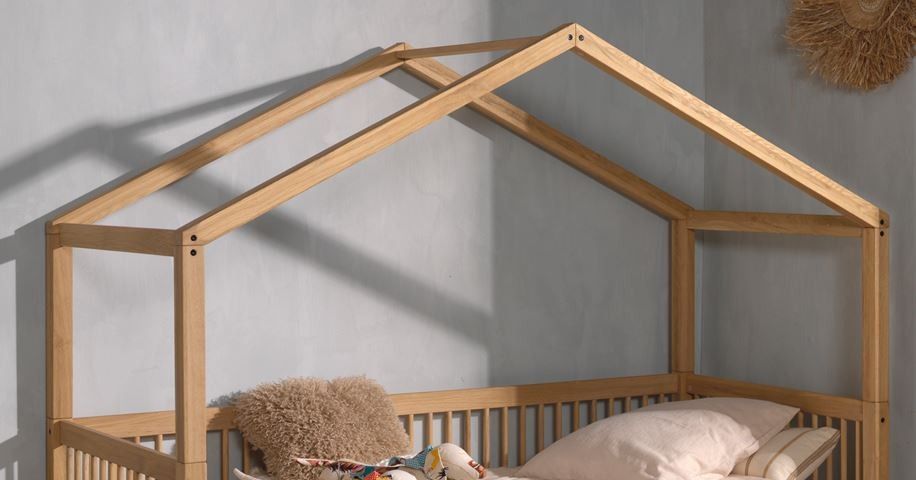 VIPACK Hausbett Kinderbett 90x200 Kindermöbel Lattenrost Spielbett Eiche massiv geölt