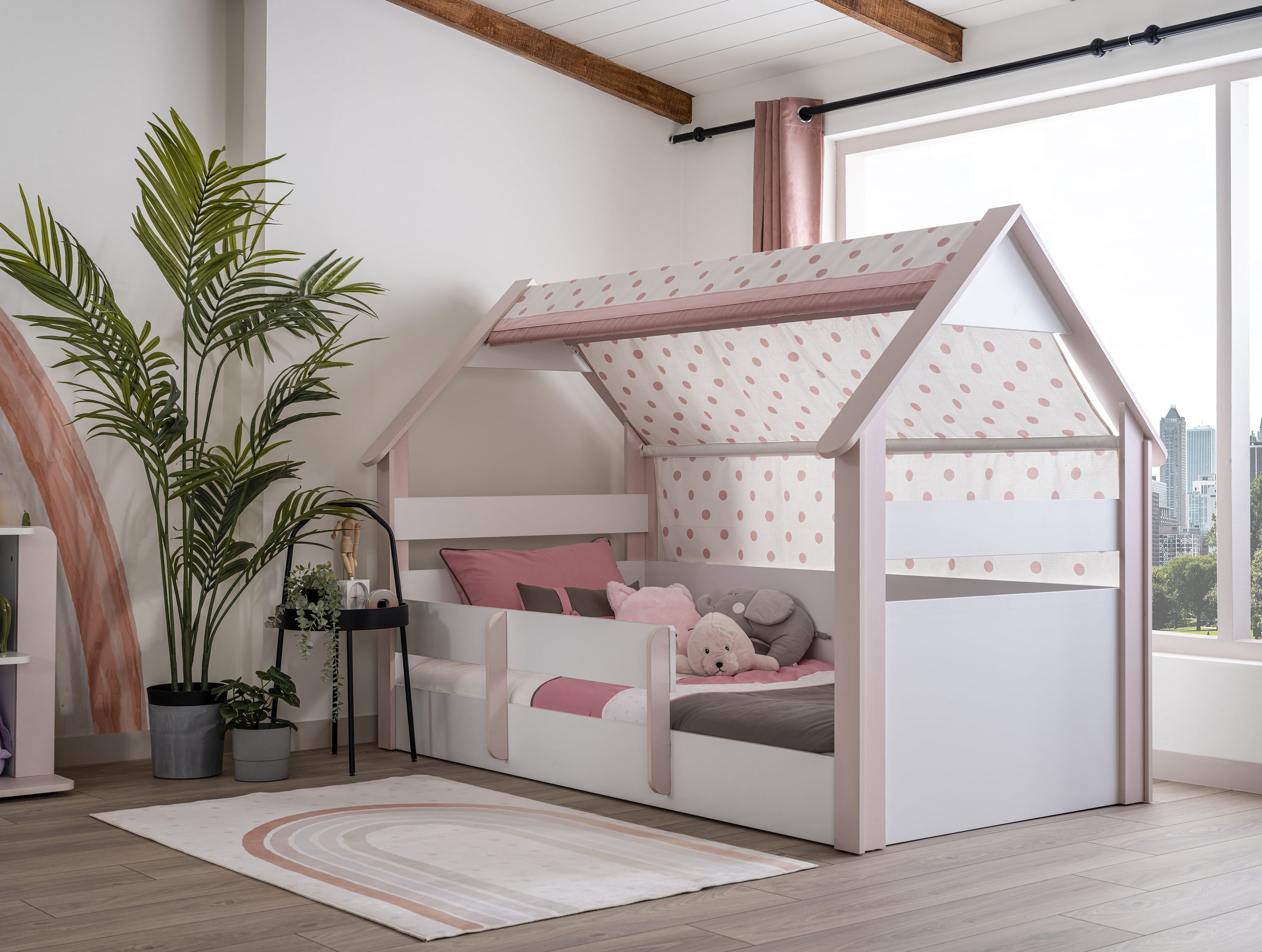 Hausbett Rainbow 100 x 200 cm in Weiß/Rosa