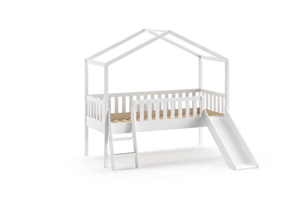 VIPACK Hausbett Rutsche 90x200 Kinderbett Spielbett Holzbett Hochbett Lattenrost Weiß