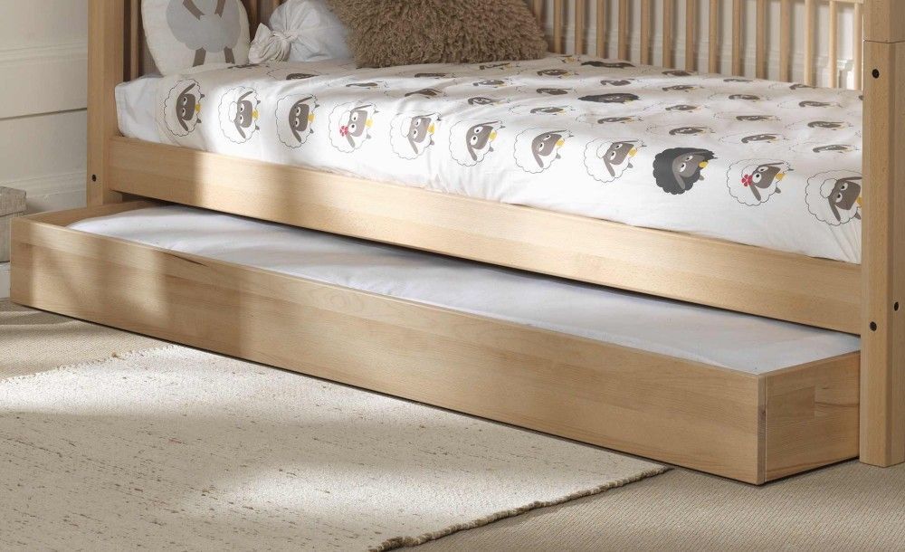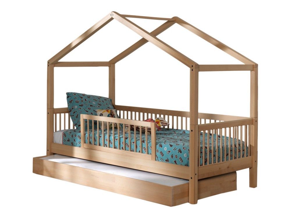 VIPACK Hausbett Spielbett 90x200 Bettschublade Rausfallschutz Lattenrost Buche Natur