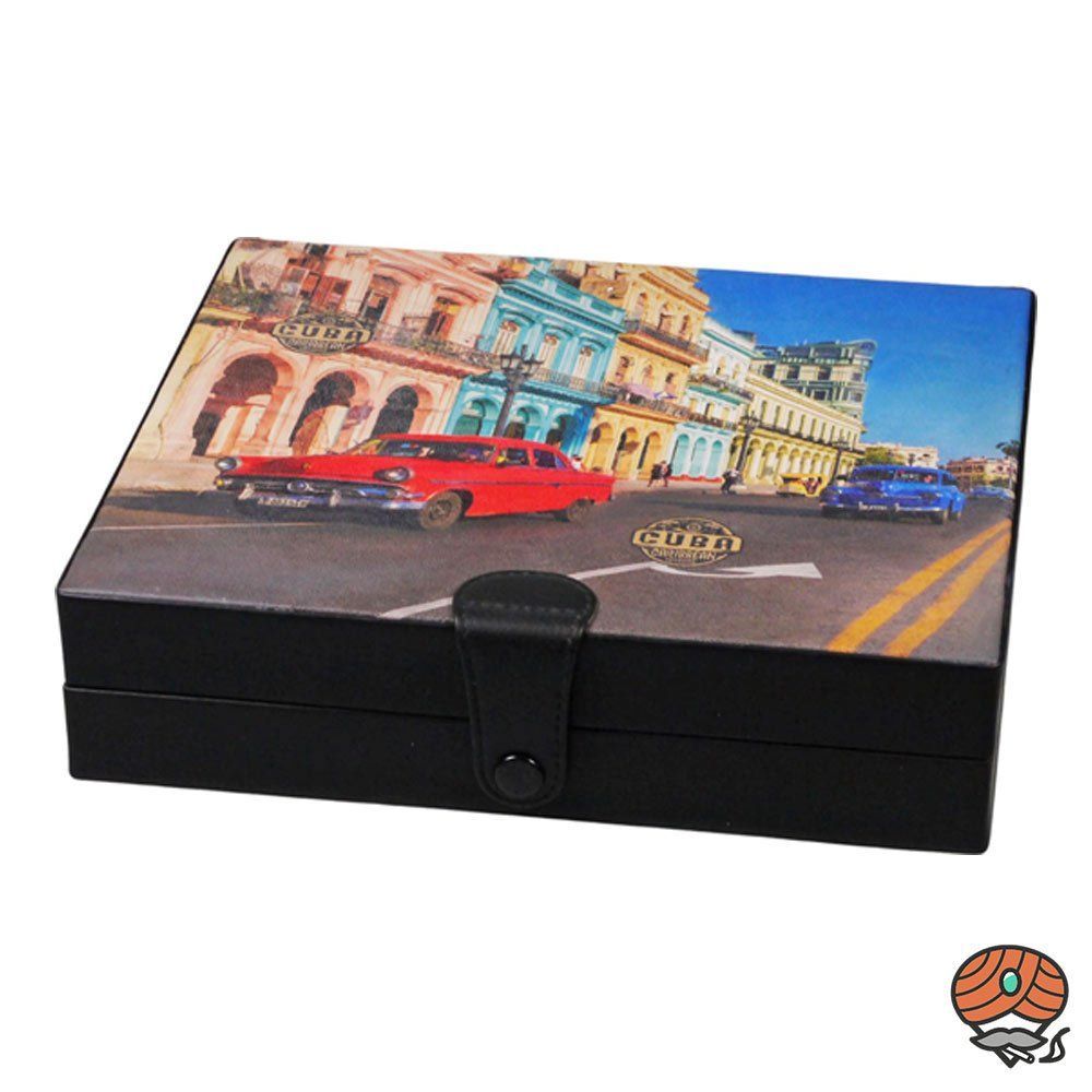 Hauser Hauser Humidor mit Karibik-Motiv, Holz und Leder, für ca. 8 bis 10 Zigarren