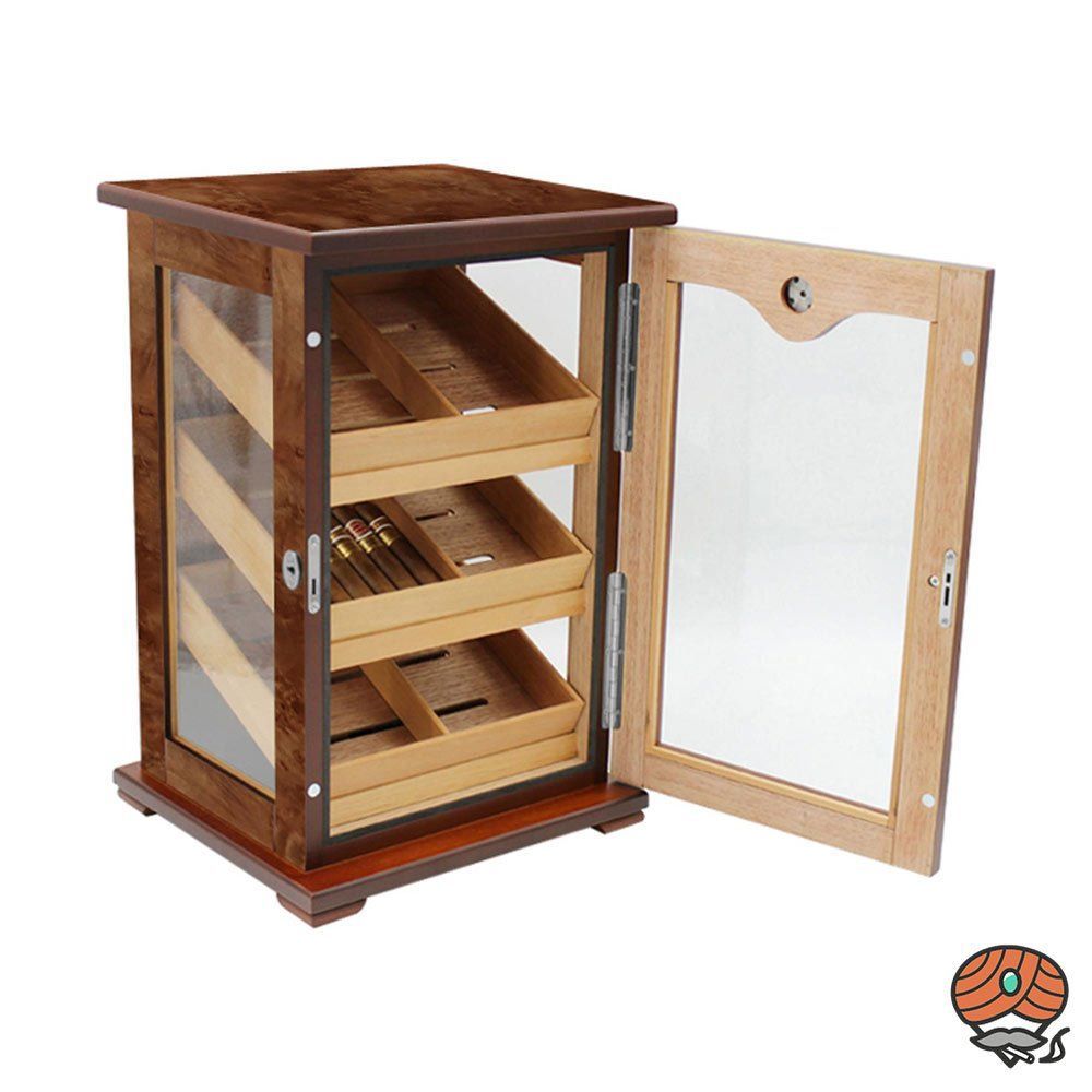 Hauser Hauser Humidor Schrank mit Glastür, Wurzelholzdekor, für ca. 120 Zigarren