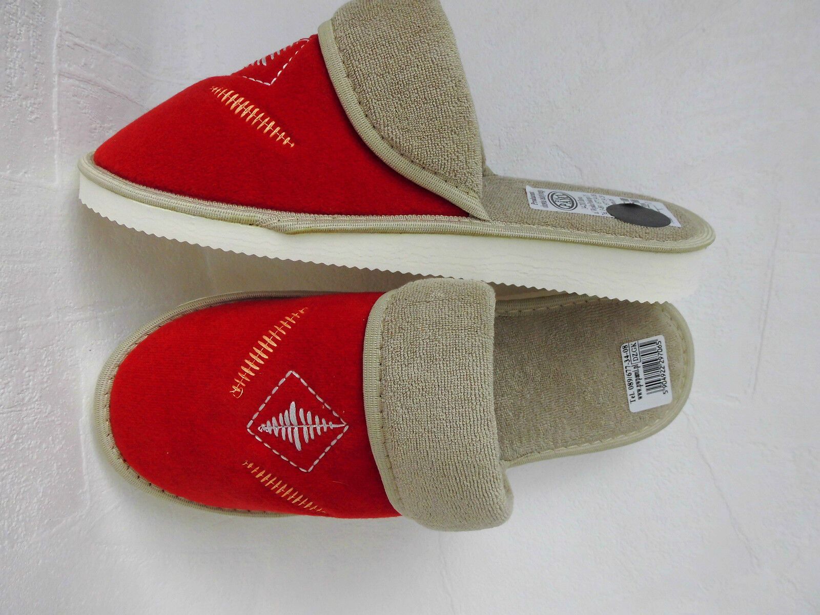 Hausschuhe - Latschen Gr. 36 Baumwolle, Rot (PL.17.10)