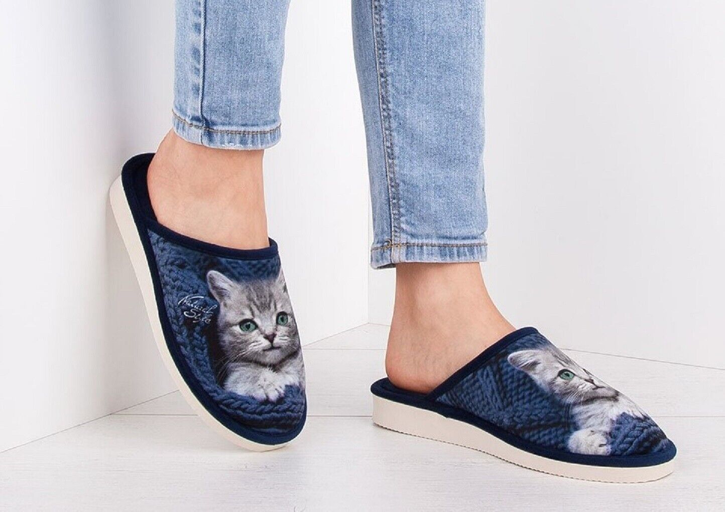 Hausschuhe - Latschen GR.36 * Super bequeme * leicht* BLAU * KATZE* a