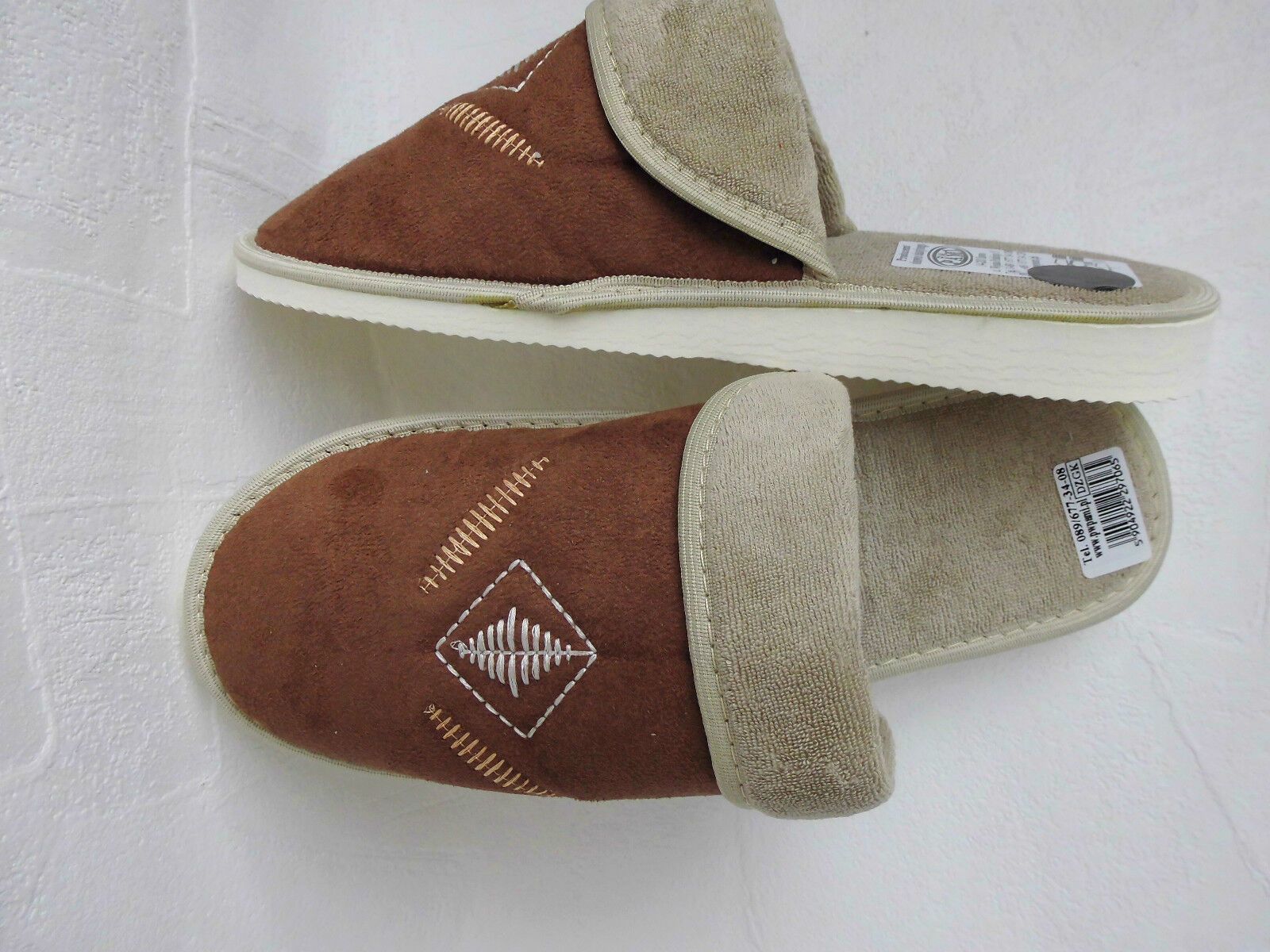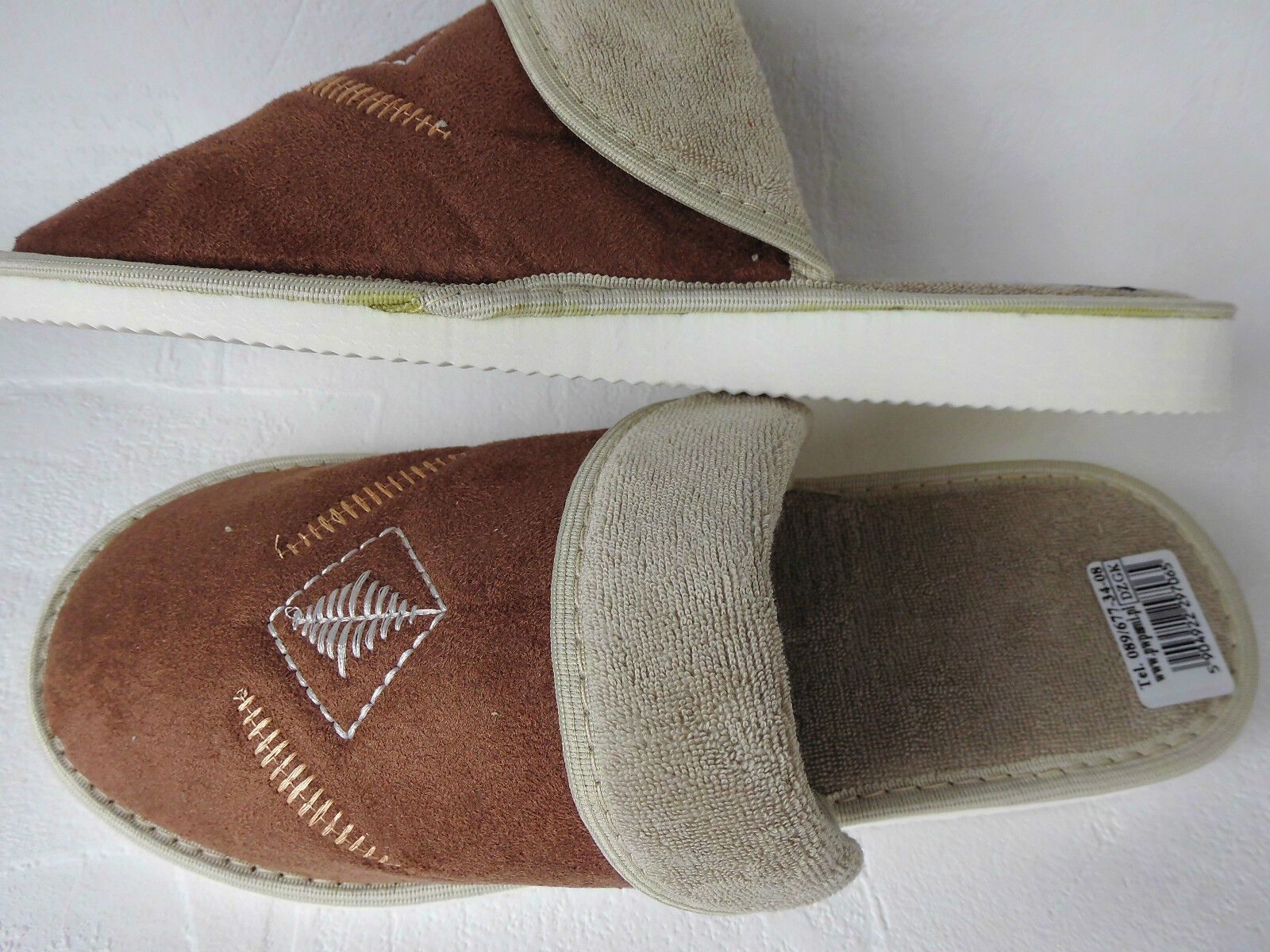 Sehr schöne und bequeme Hausschuhe - Latschen - Pantolette Gr. 38 Die Hausschuhe bestehen außen und innen aus Baumwolle - Velours Die Sohle besteht aus Styrogummi(rutschfest) 7-17 mm 1) sehr leicht; 2) leise Schritte; 3) immer warme Füße besonders bei den Fliesen ohne Fußbodenheizung (eigene Erfahru
