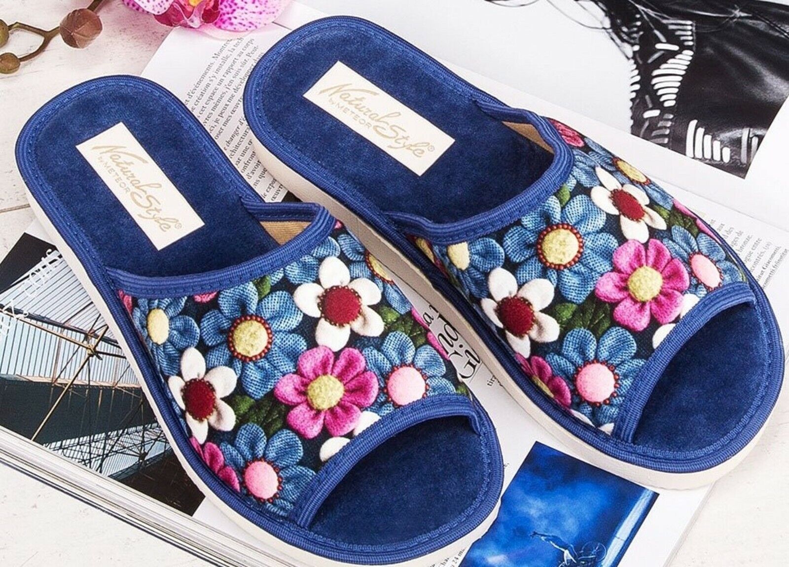 Hausschuhe - Latschen GR.41 * Super bequeme * leicht * - Blümchen Blau -2
