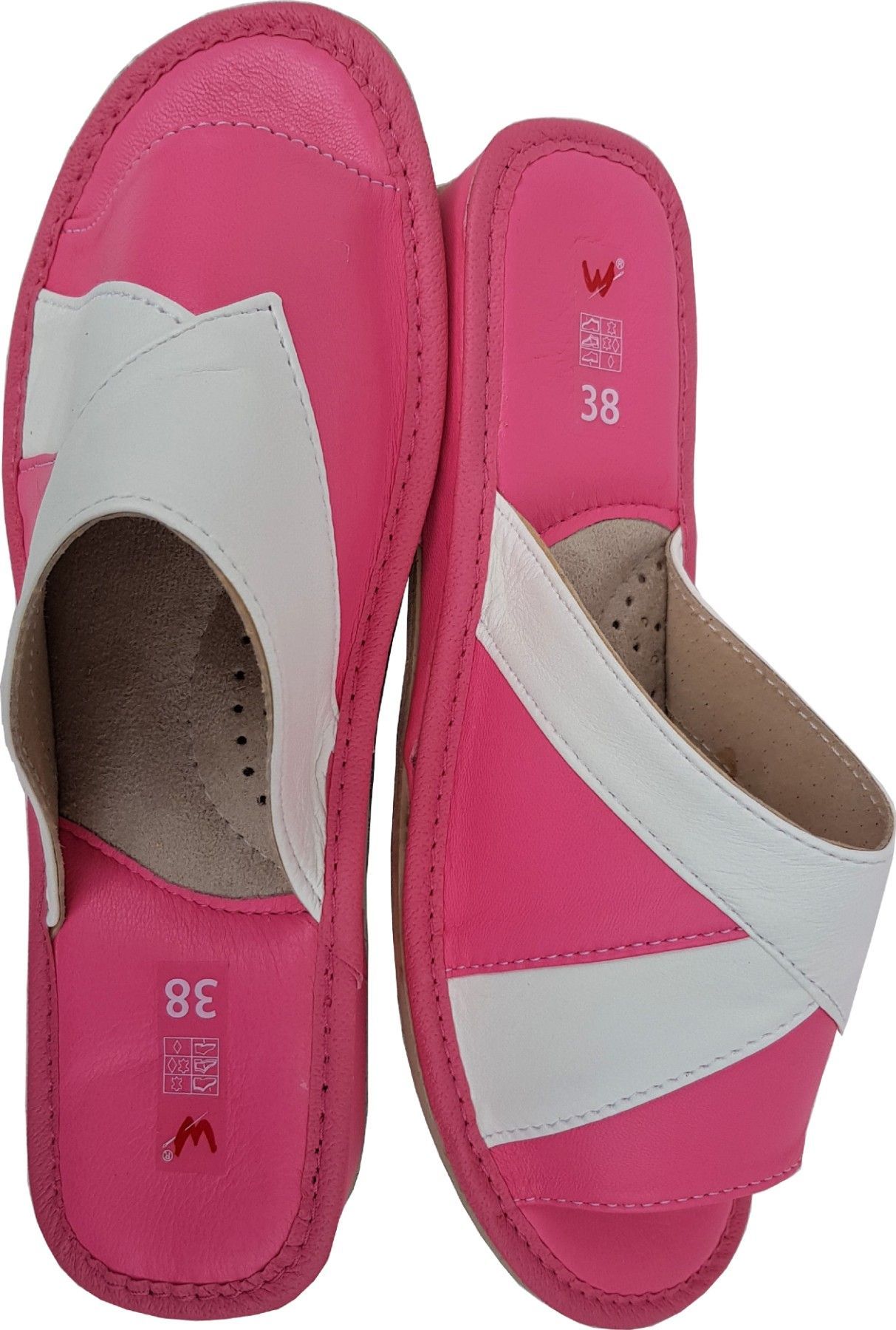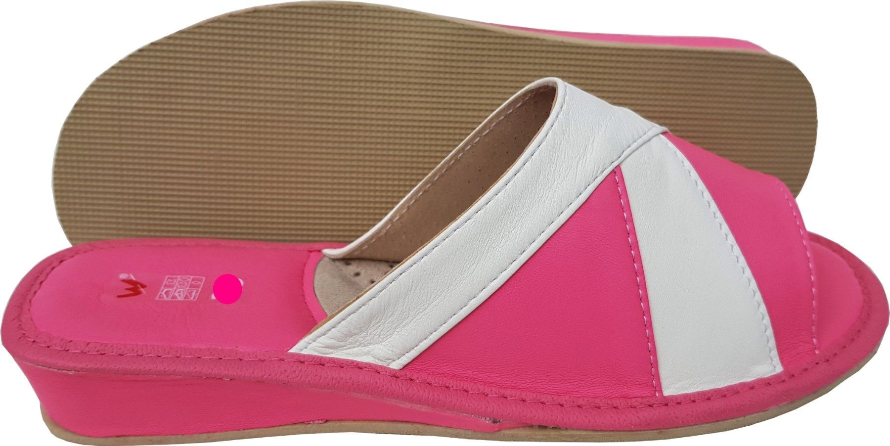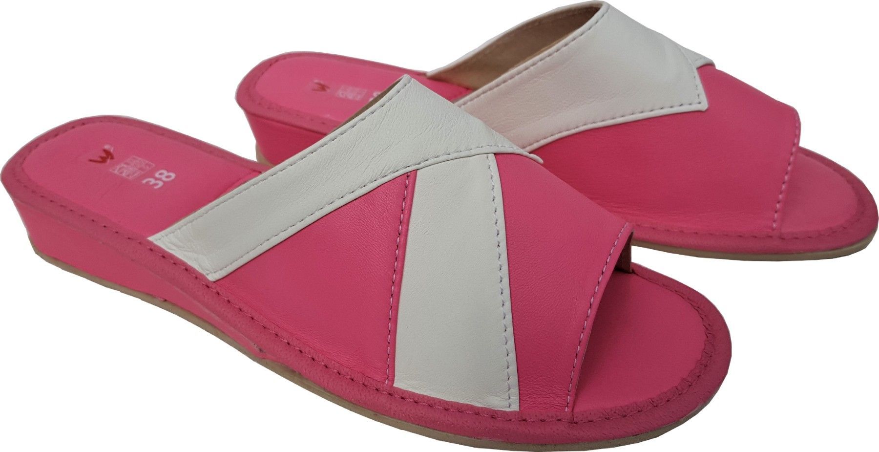 Sehr schöne und bequeme Hausschuhe - Latschen - Pantolette Gr. 35-36-37-38-39-40-41 * ROSA - WEISS* Obermaterial aus hochwertigem Leder (Kalb) Mit kompletter Lederinnenaustattung und mit dem Fussbett Die Sohle besteht aus Gummi (rutschfest) Absatz ca. 3,9 cm Neu, keine billig Ware, stabile Ausführun