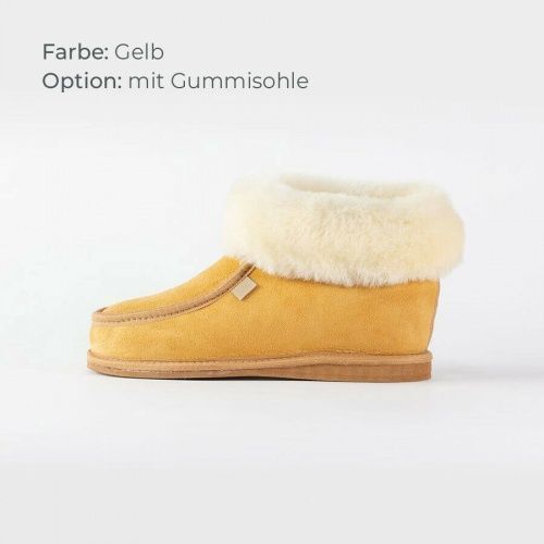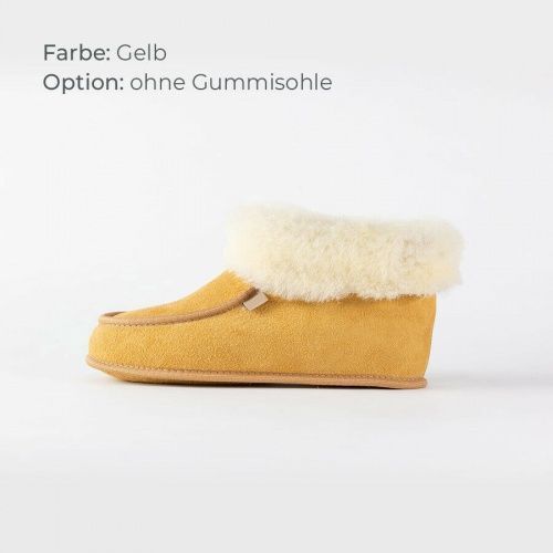Beige mit Gummisohle, Beige ohne Gummisohle, Cappuccino mit Gummisohle, Cappuccino ohne Gummisohle, Gelb mit Gummisohle
