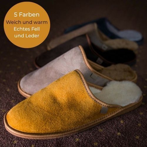 Hausschuhe Pantoffeln Slipper ECHT Deutsches Merinoschaffell/ LEDER Rutschfest GG