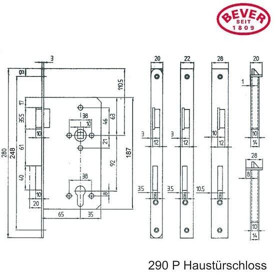 Haustür Schloss Bever 290P22 Einsteckschloss DIN rechts Haustüren für Profilzylinder