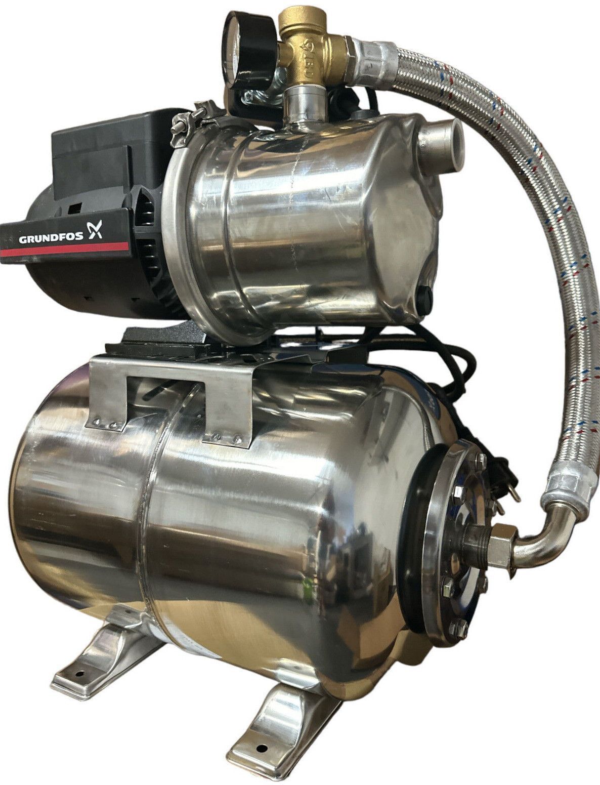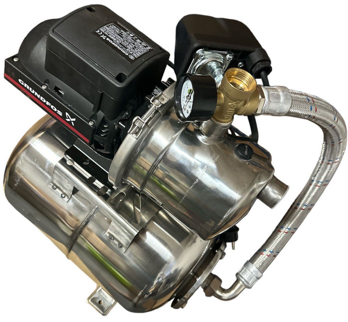 Kessel aus Polen, Pumpe aus Ungarn, Druckschalter aus Italien. Folgerichtig Bedienungsanleitung auf polnisch oder kyrillisch. Dem Druckschalter fehlen für Elektro Eingang und Ausgang die Dichtungen insofern nicht vollständig spritzwassergeschützt. Kabelbaum zum Anschluss Druckschalter an Pumpenmotor nicht mitgeliefert ausschließlich stromführendes Kabel zum Umbau. Das 5-Wegeventil ist etwas kurz geraten so dass der Druckschalter liegend oder um 45° gekippt eingebaut werden muss um die stromführenden Kabel am Pumpengehäuse vorbeilegen zu können. Das Gerät läuft sehr leise, ist aber alles andere als eine Plug-and-Play Installation.