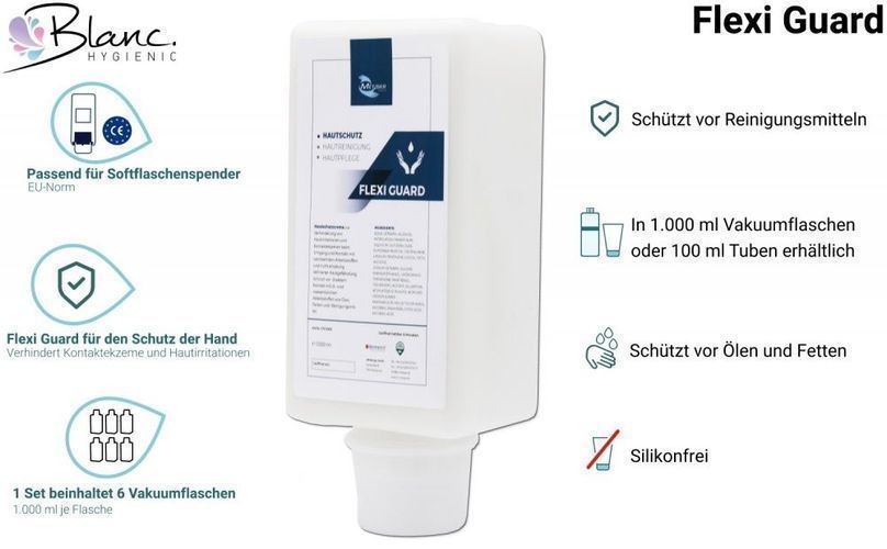 Hautschutzcreme siliconfrei Flexi Guard SET, 6 x 1.000 ml Vakuumflaschen