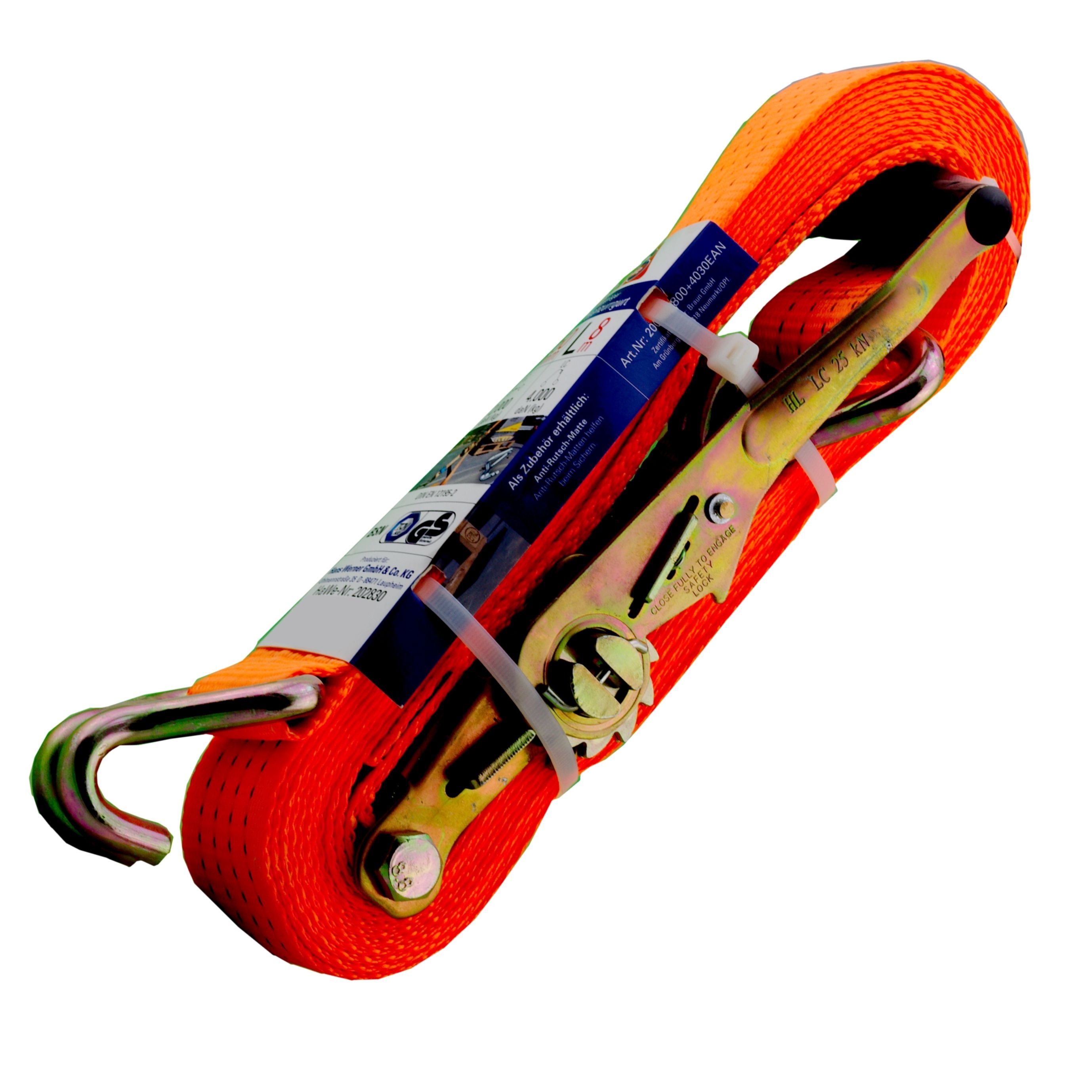 Zweiteiliger Zurrgurt mit 8 m Länge und 50 mm Breite Zweiteilige Zurrgurte sind handlich und schnell anzubringen und in der Ladungssicherung heute kaum zu ersetzen. Sie setzen voraus, dass die Gurte eingehängt werden können, also z. B. Ösen, Schienen oder ähnliches vorhanden sind. Dann aber sparen Sie Zeit, weil der Gurt nicht um die Ware herum geführt werden muss.
