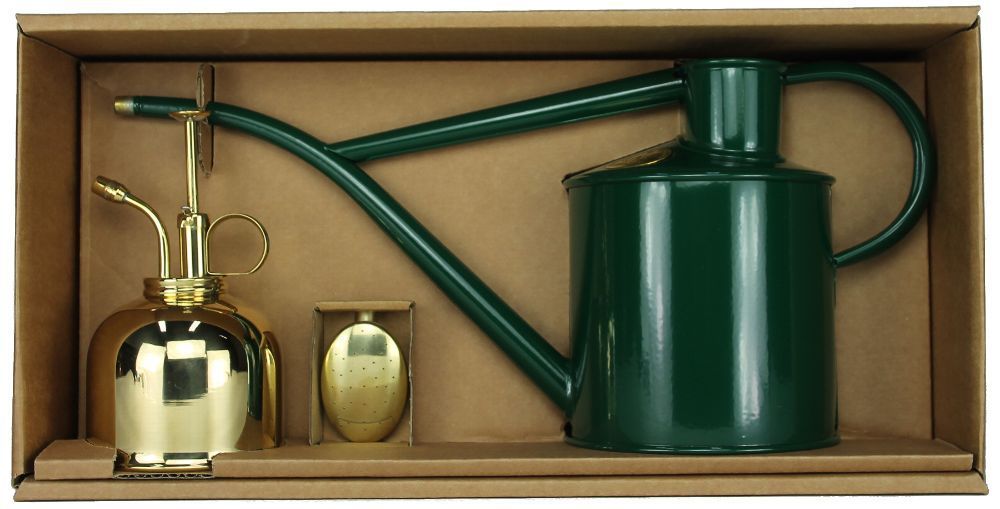 Haws Haws Zimmergießkanne Gießkanne Grün mit Messing Pflanzensprüher im Geschenk - Set