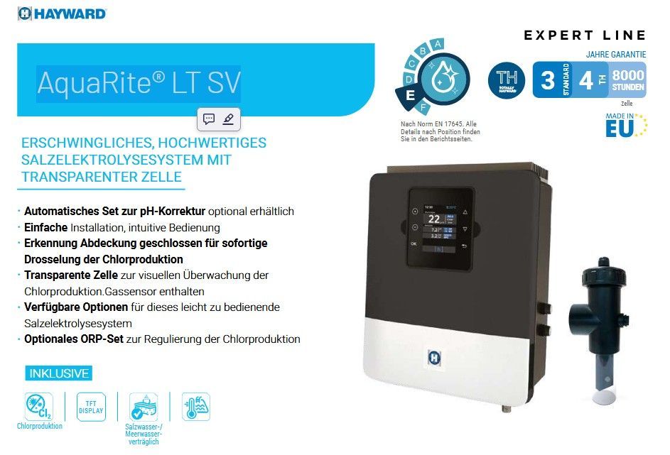 Hayward Salzelektrolyse Aquarite LT SV Salzanlage 16 g/h