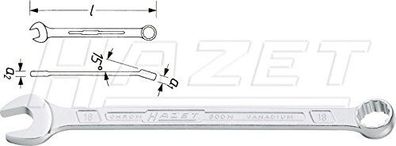 HAZET Ringmaulschlüssel Schlanke Bauform, Oberfläc SW 18, Länge: