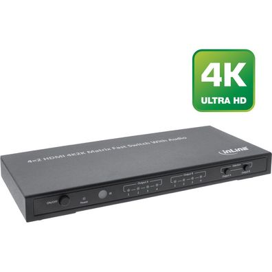 InLine® HDMI Matrix Switch / Umschalter, 4K2K, 4 Eingänge auf 2 Ausgänge