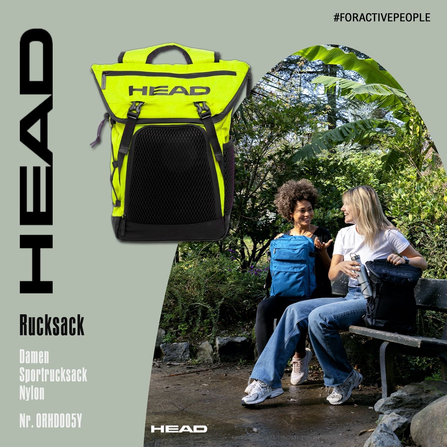 Hier ist ein wunderschöner Head Marken-Sportrucksack für Damen Herren in der Farbe gelb. Dieser trendige Rucksack ist aus Nylon Mesh und wird mit Reißverschluss verschlossen.