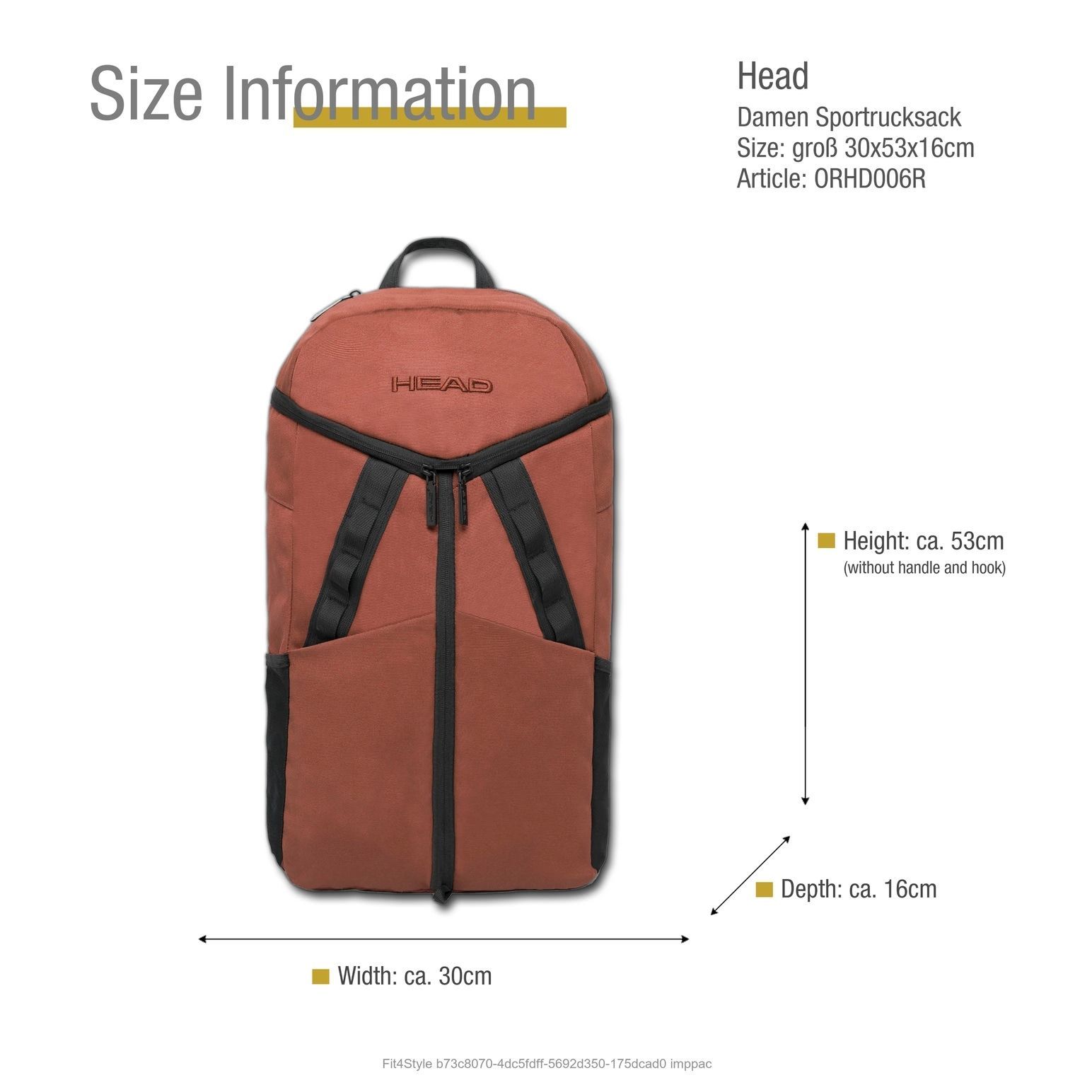 Hier ist ein wunderschöner Head Marken-Sportrucksack für Damen Herren in der Farbe rot. Dieser trendige Rucksack ist aus Polyester und wird mit Reißverschluss verschlossen.