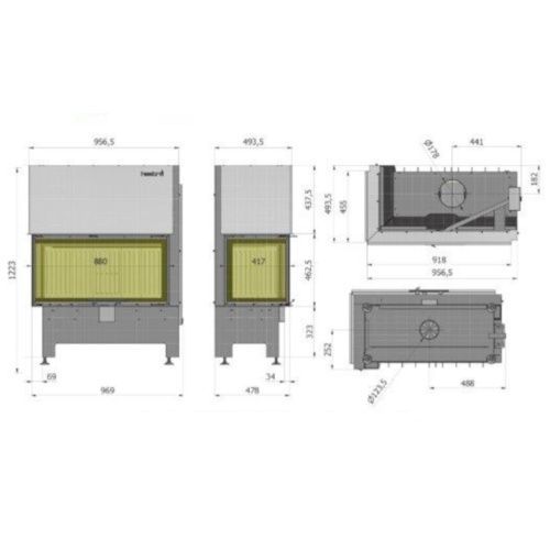 Heatro 81LH Black Eck-Kamineinsatz mit Hebetür 12kW linksverglast