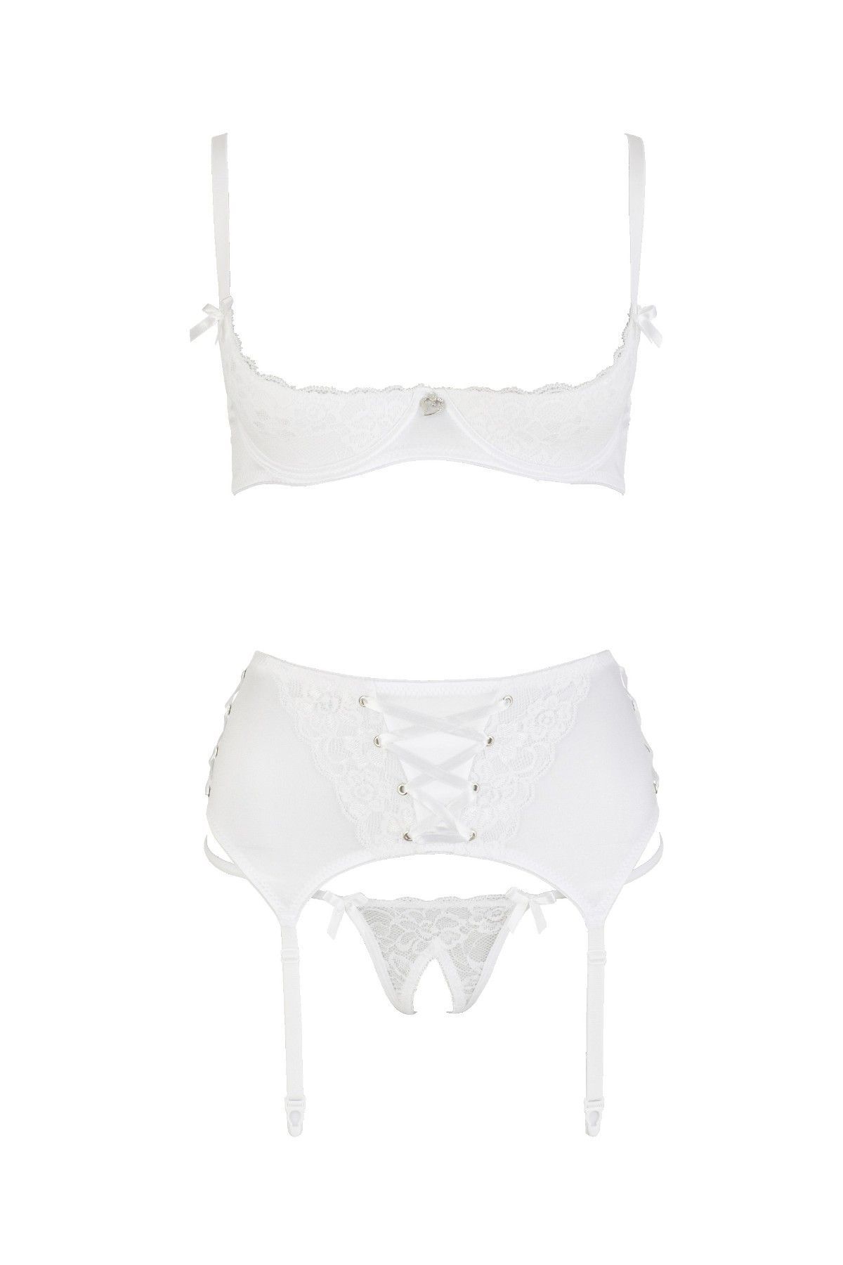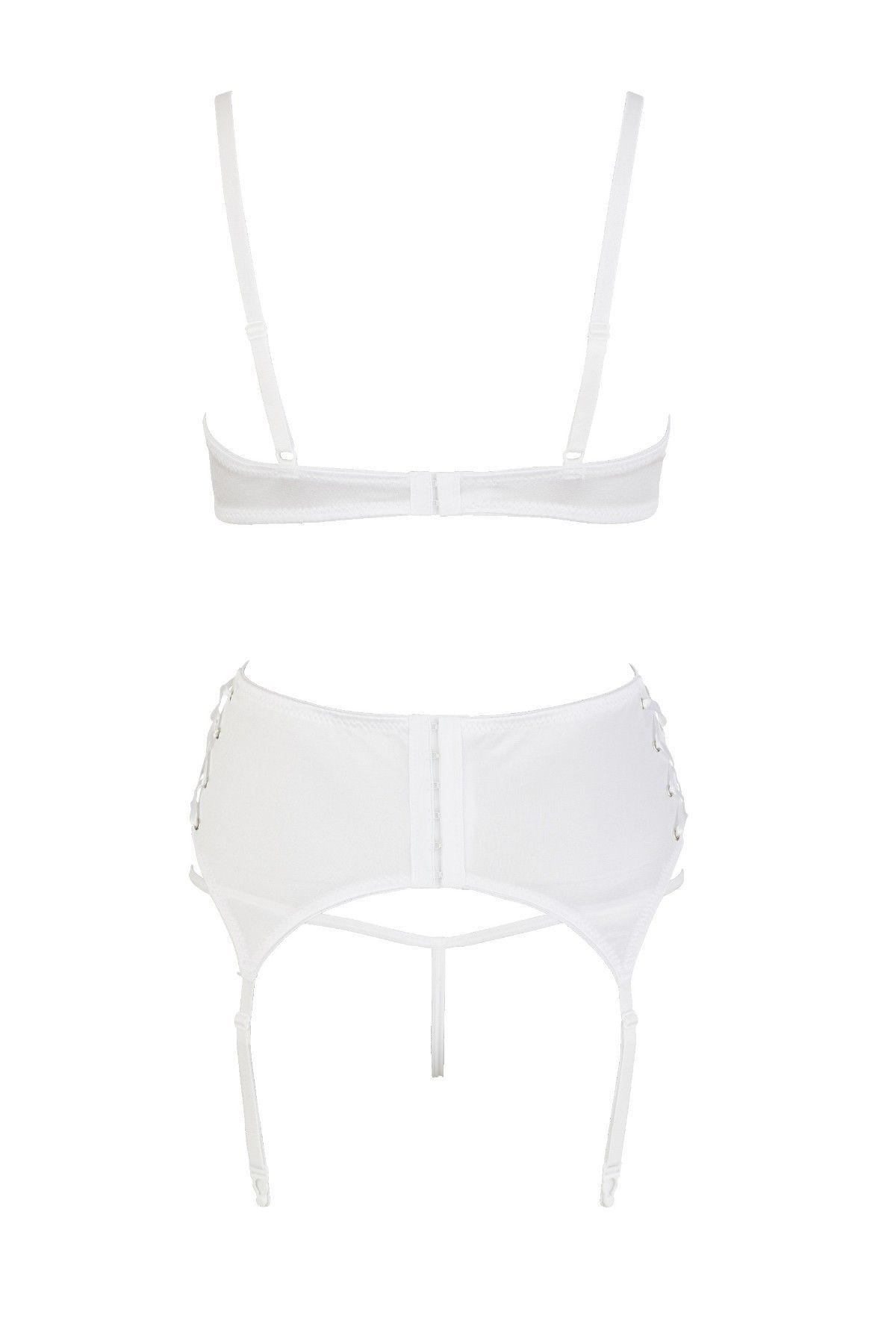 Cottelli Collection Hebe BH Set Weiß Satin und spitze, mit Strapsgürtel Gr. 75B, 80B, 85B, 80C, 85C