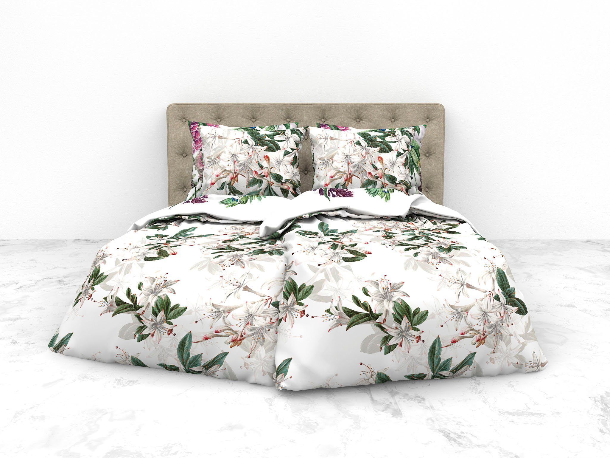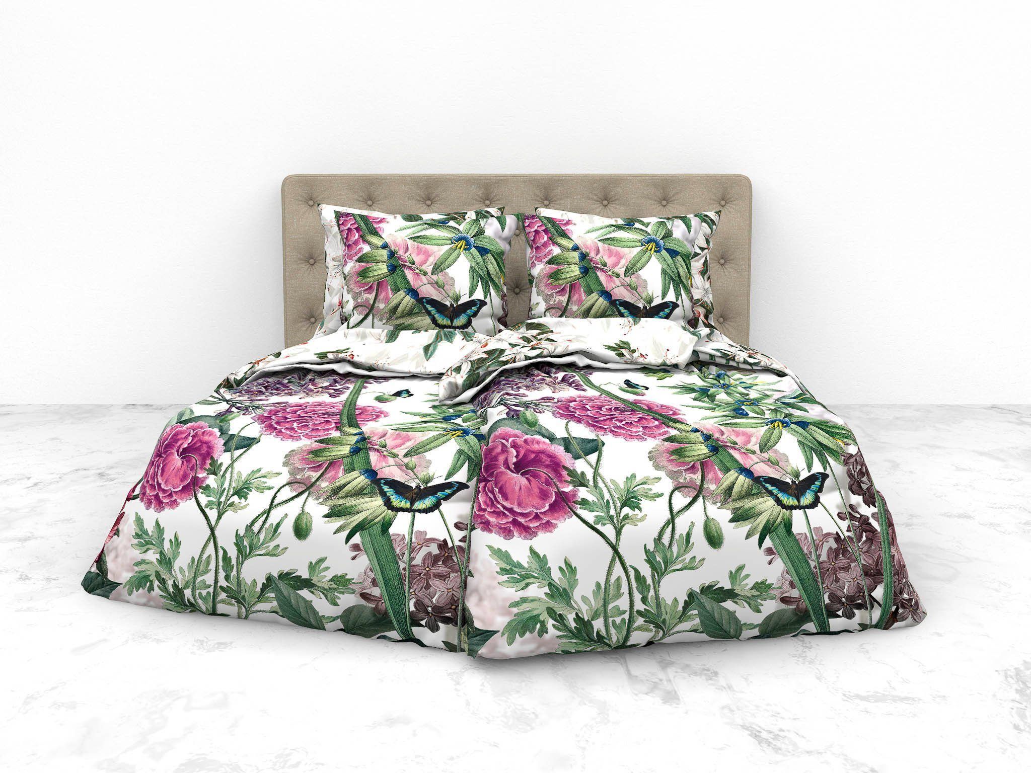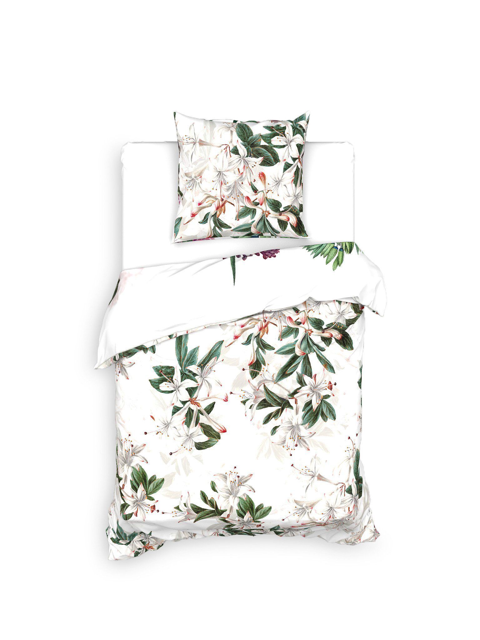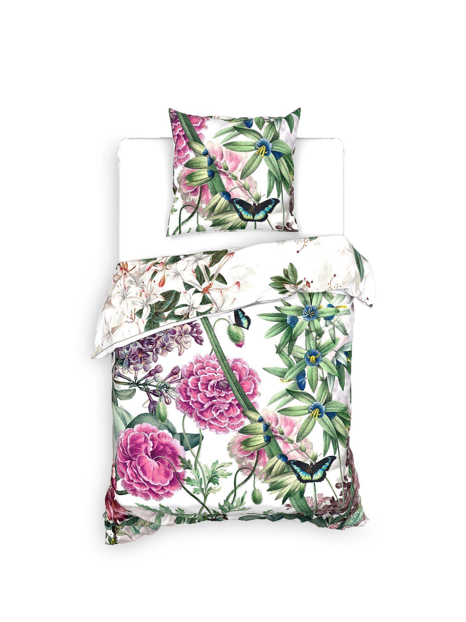 Heckett & Lane BCI Twill Bettwäsche 135x200 Murano green Blüten grün pink