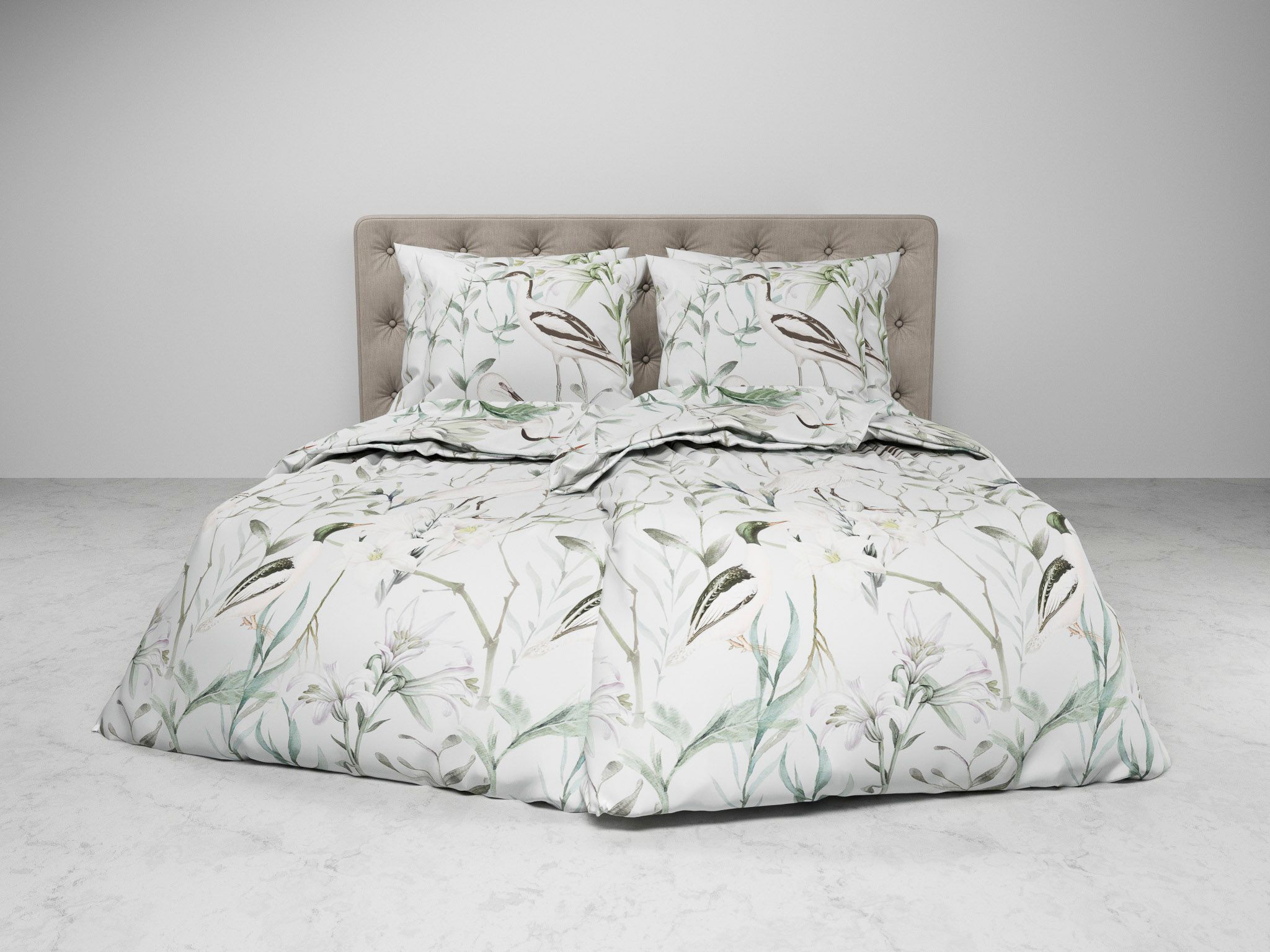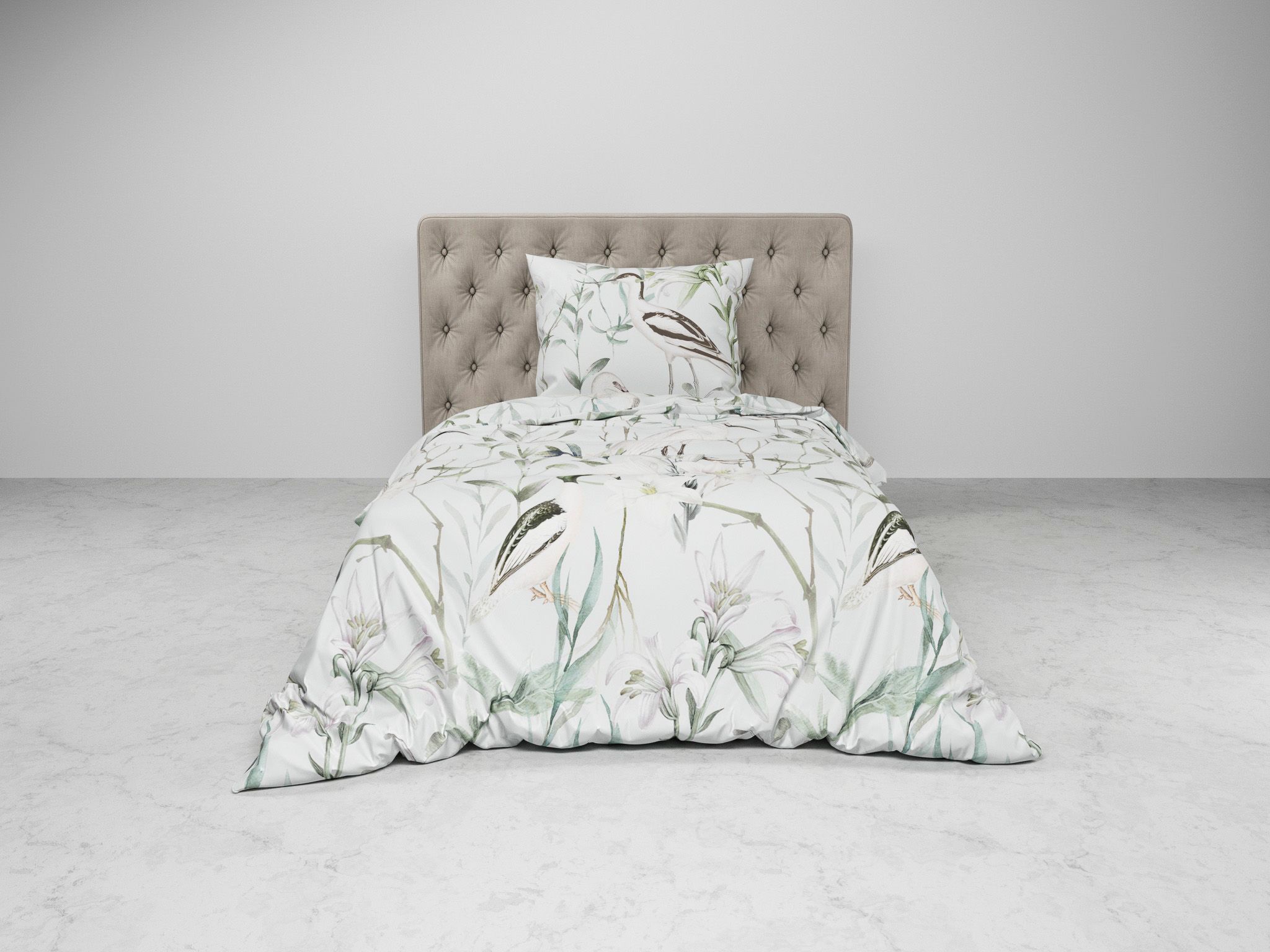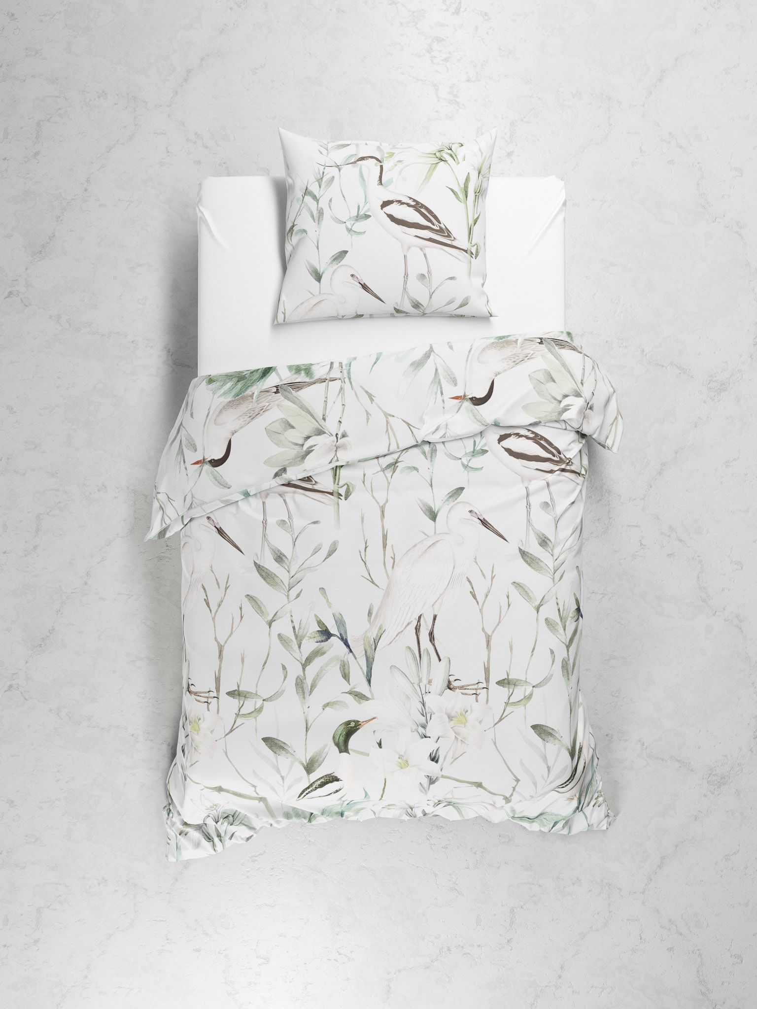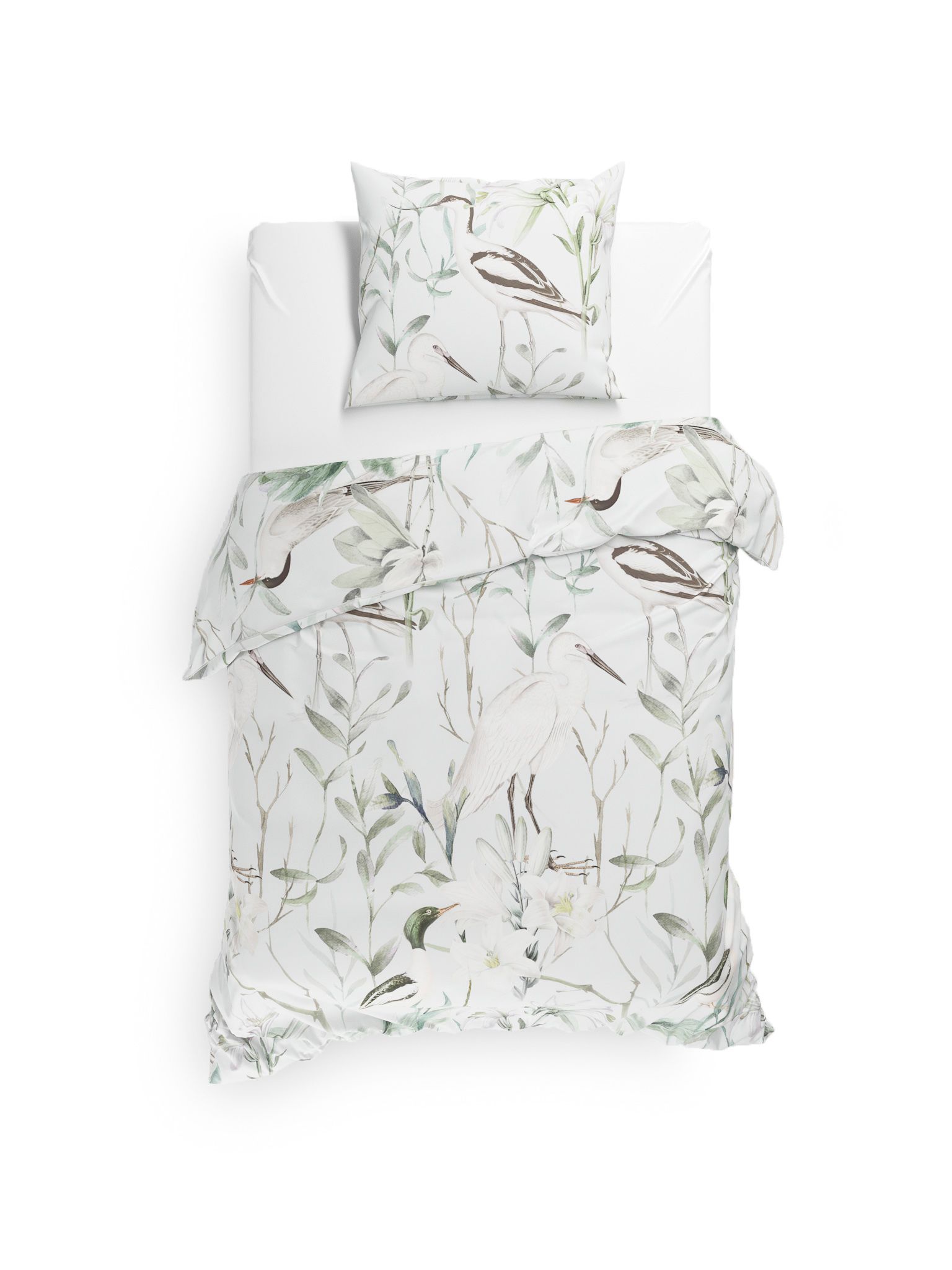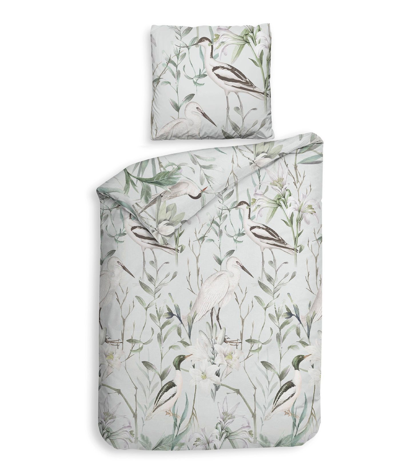 Heckett & Lane Flanell Bettwäsche 135x200 Raven Frost blue Vögel Gräser hellblau