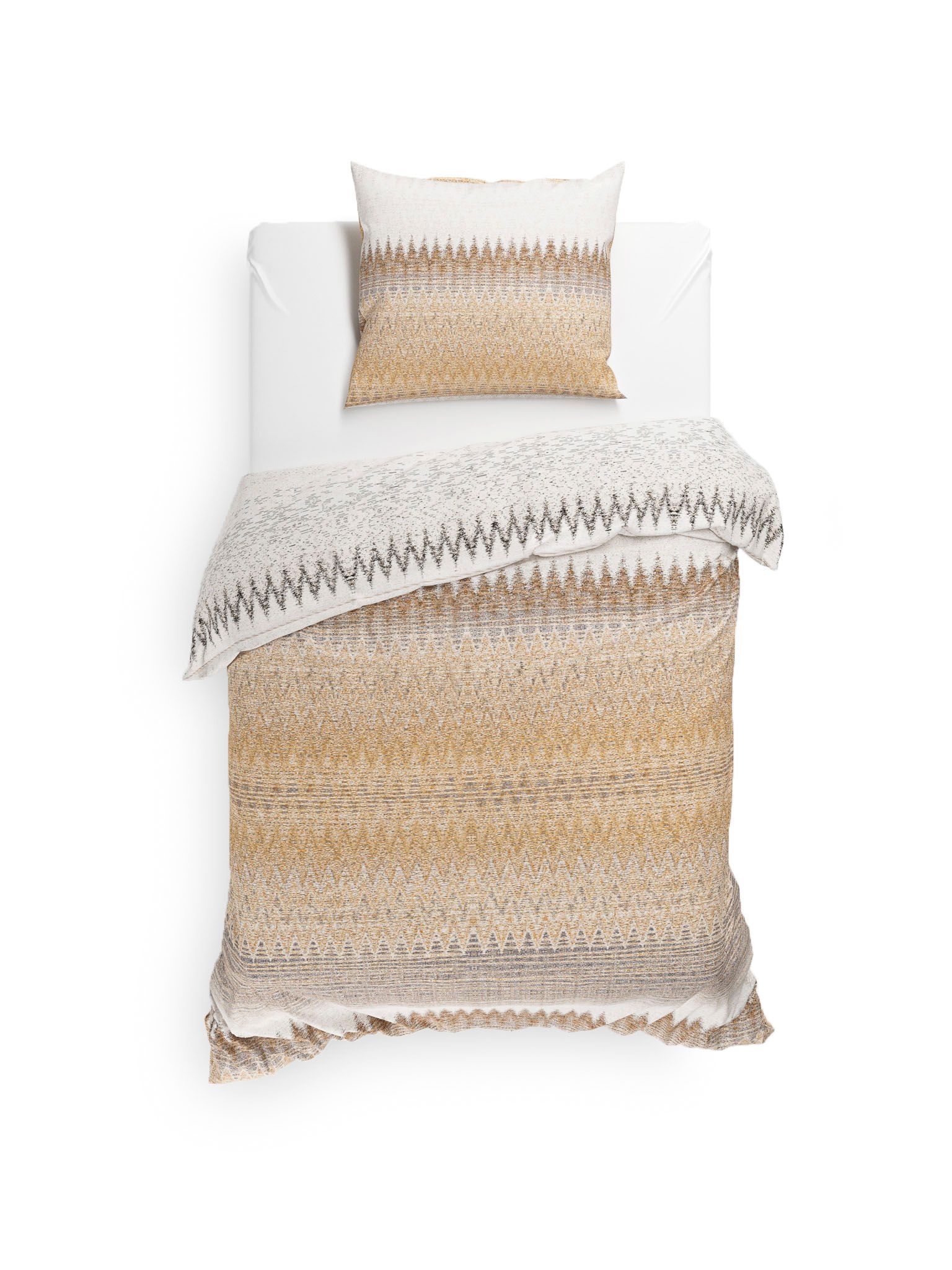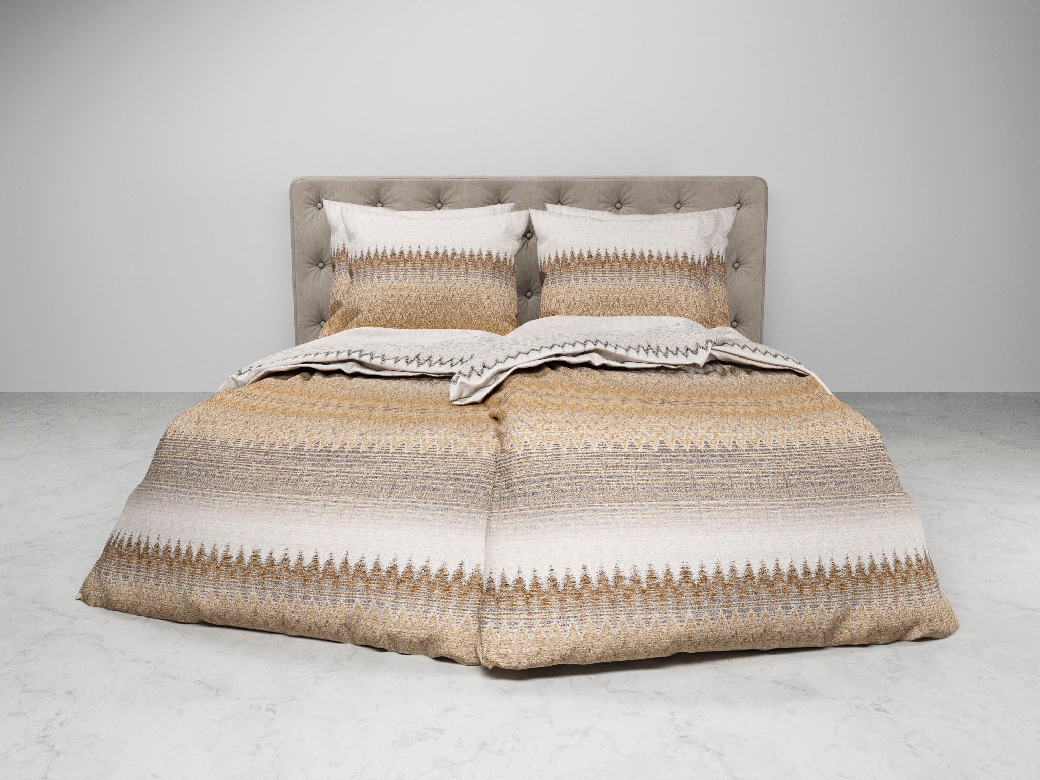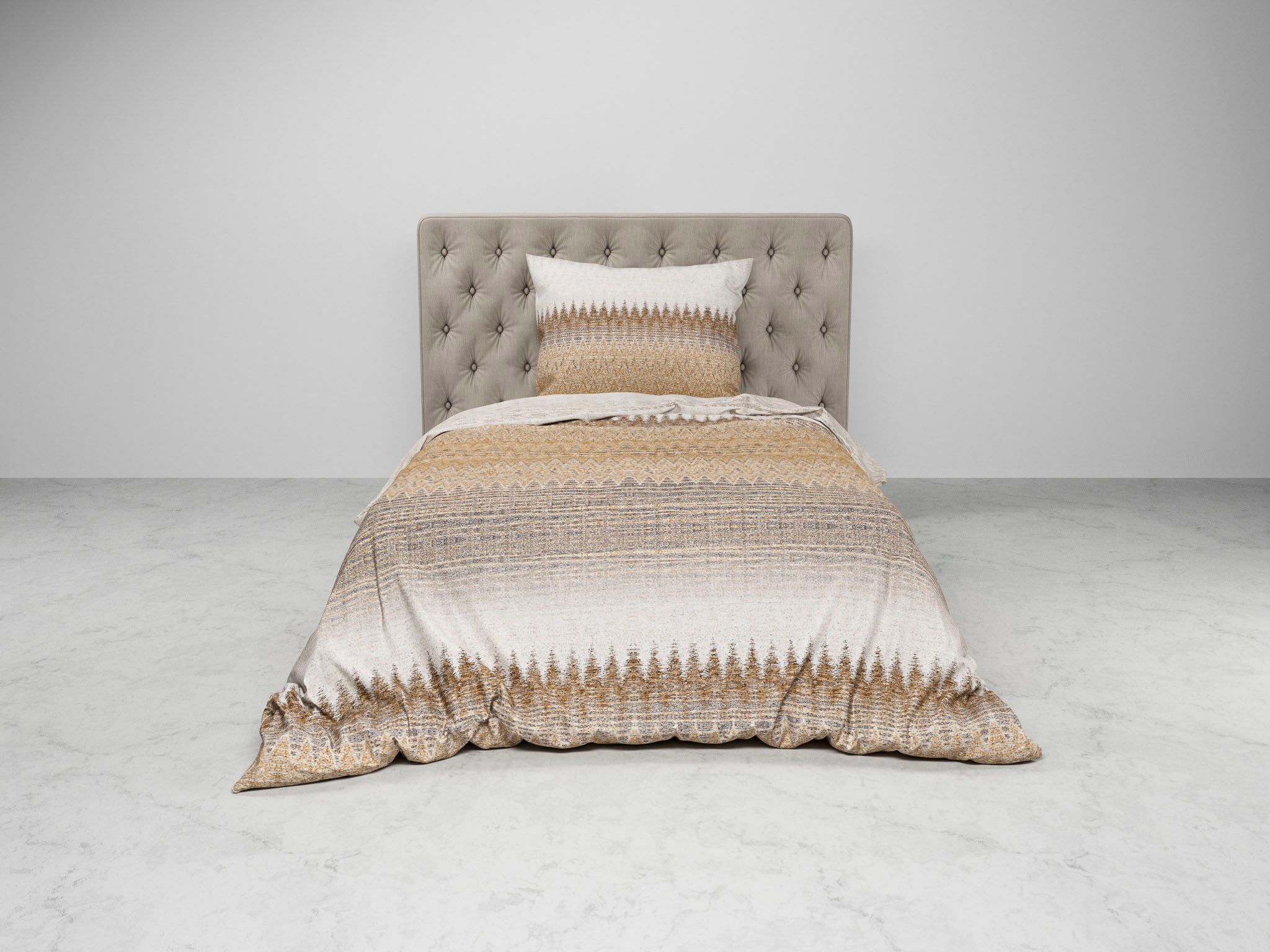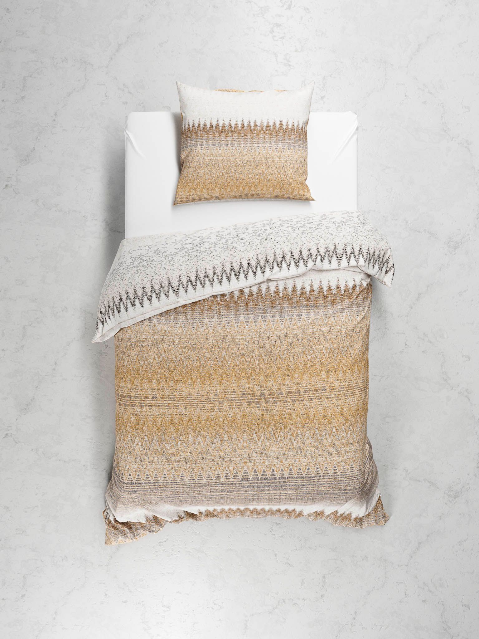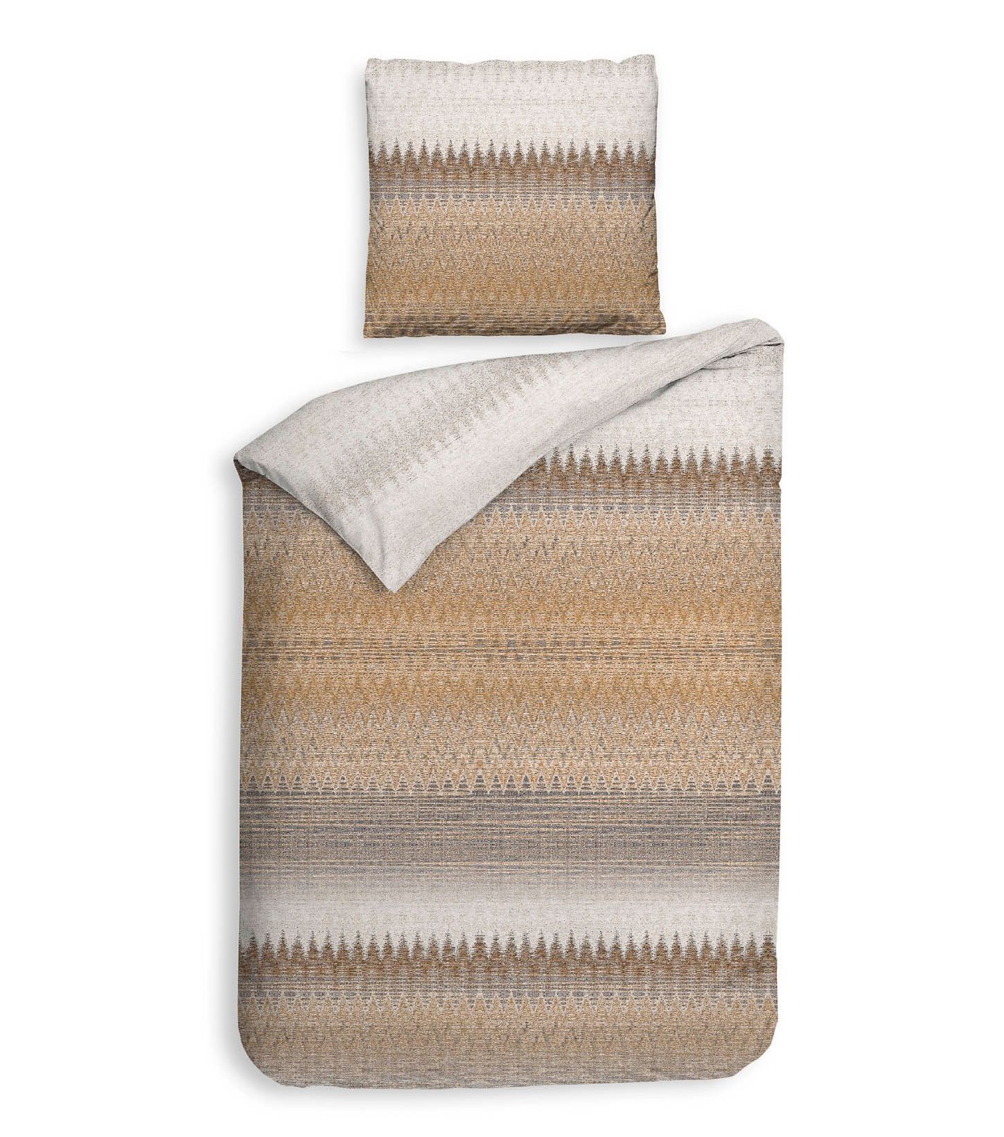 Heckett & Lane Flanell Bettwäsche 155x220 Abbe Sepia Natural Zickzack Streifen beige