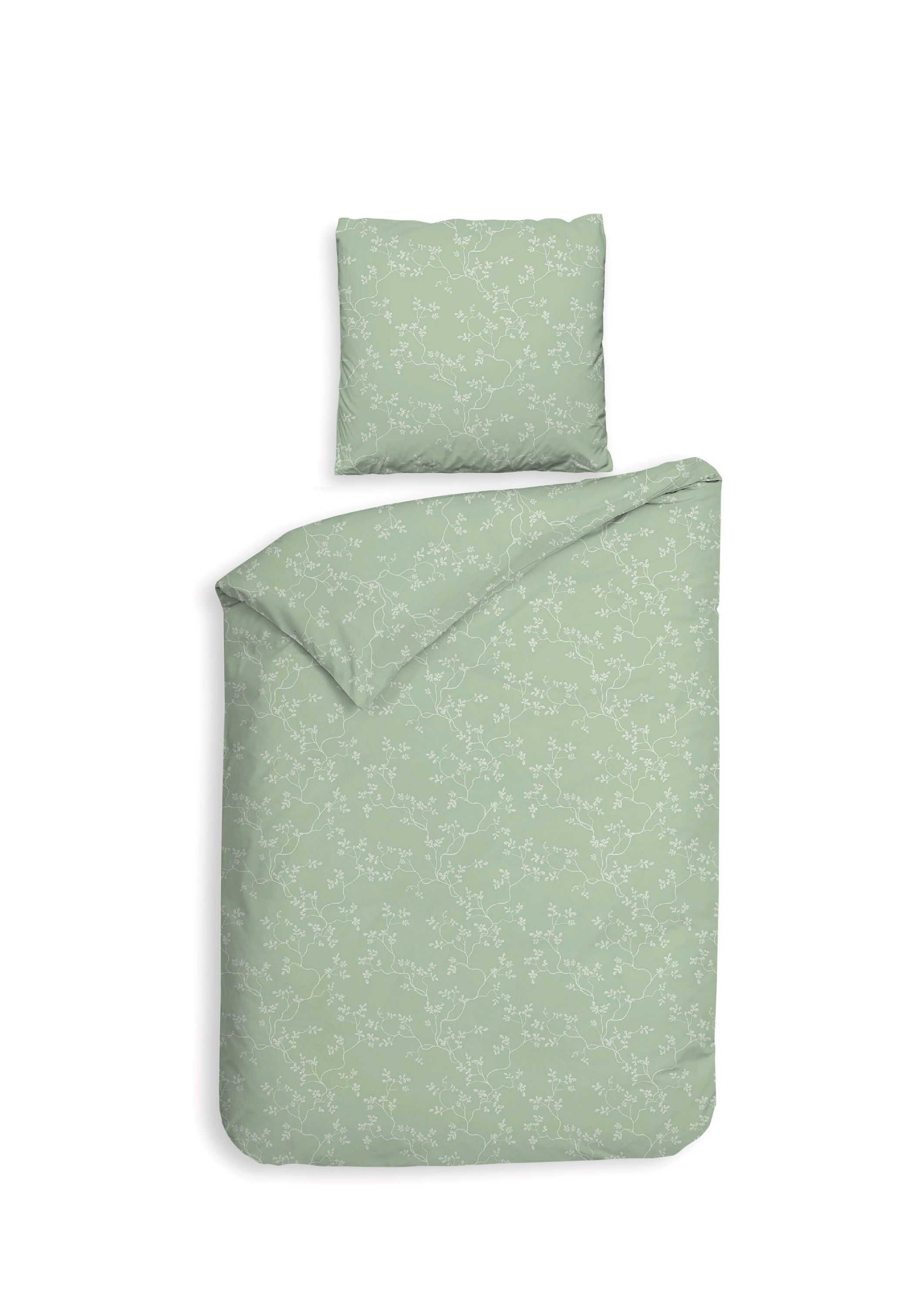 • Heckett & Lane Twill Bettwäsche 135x200 Juliette natural Blätter Blüten grün