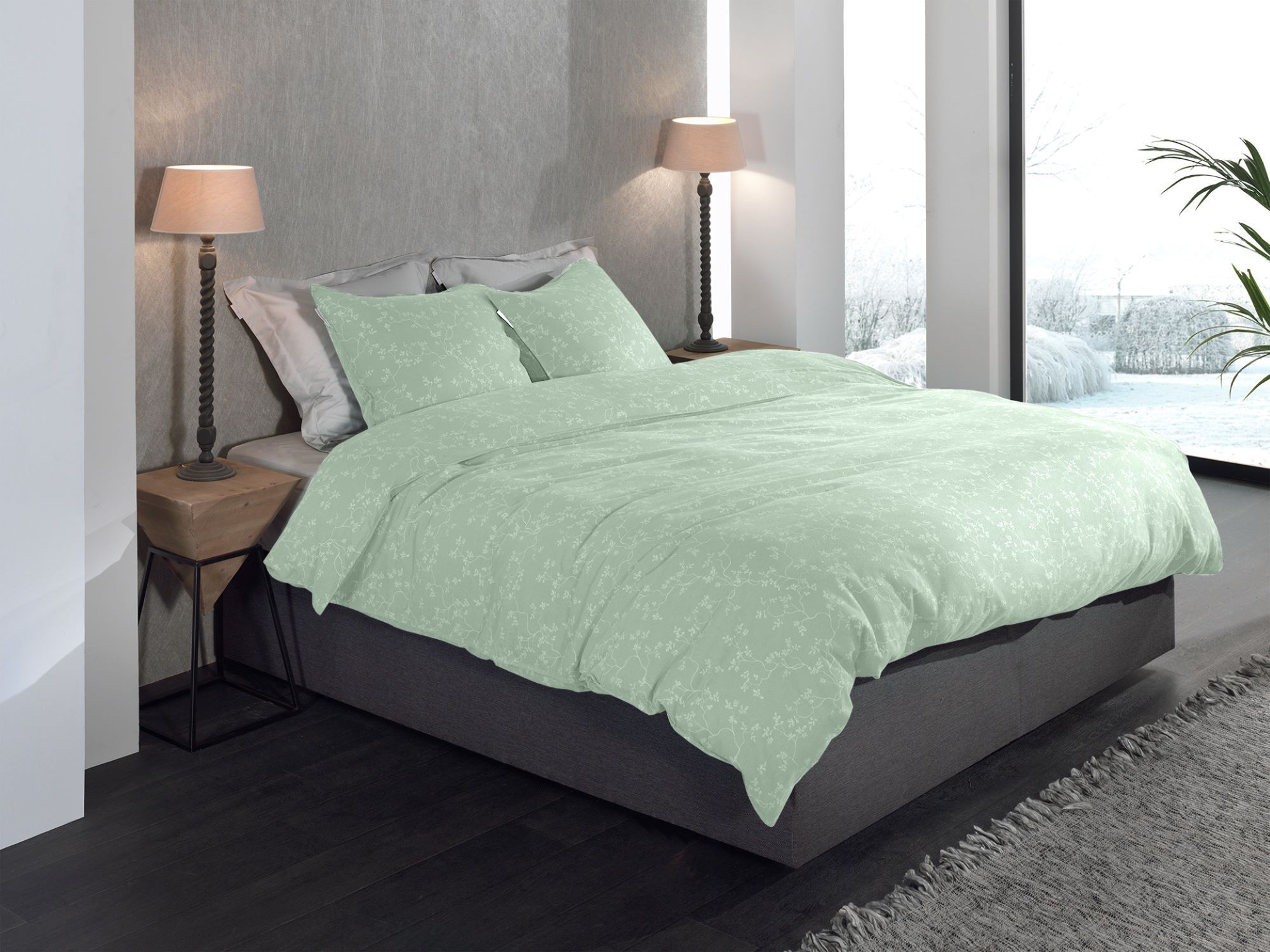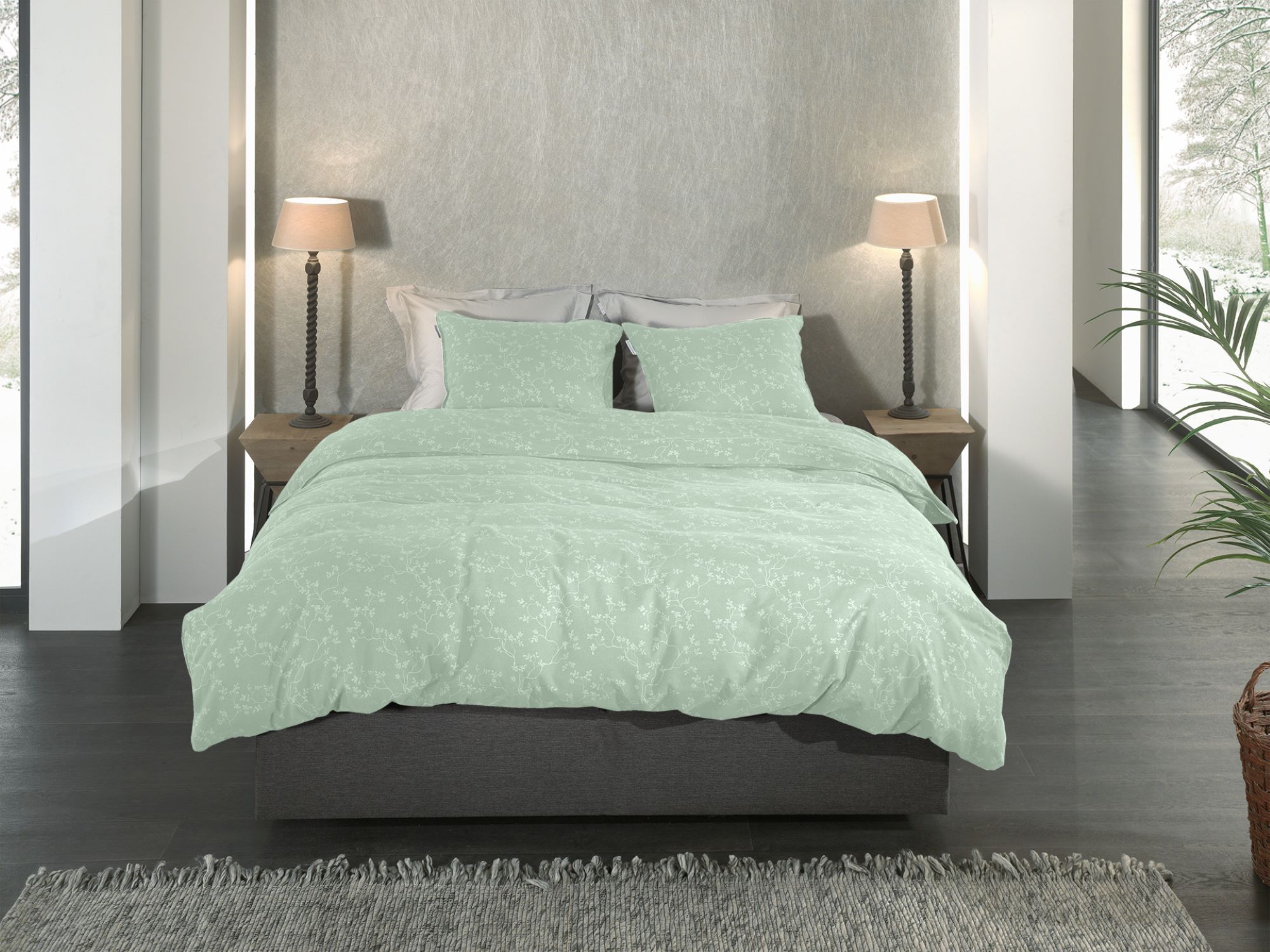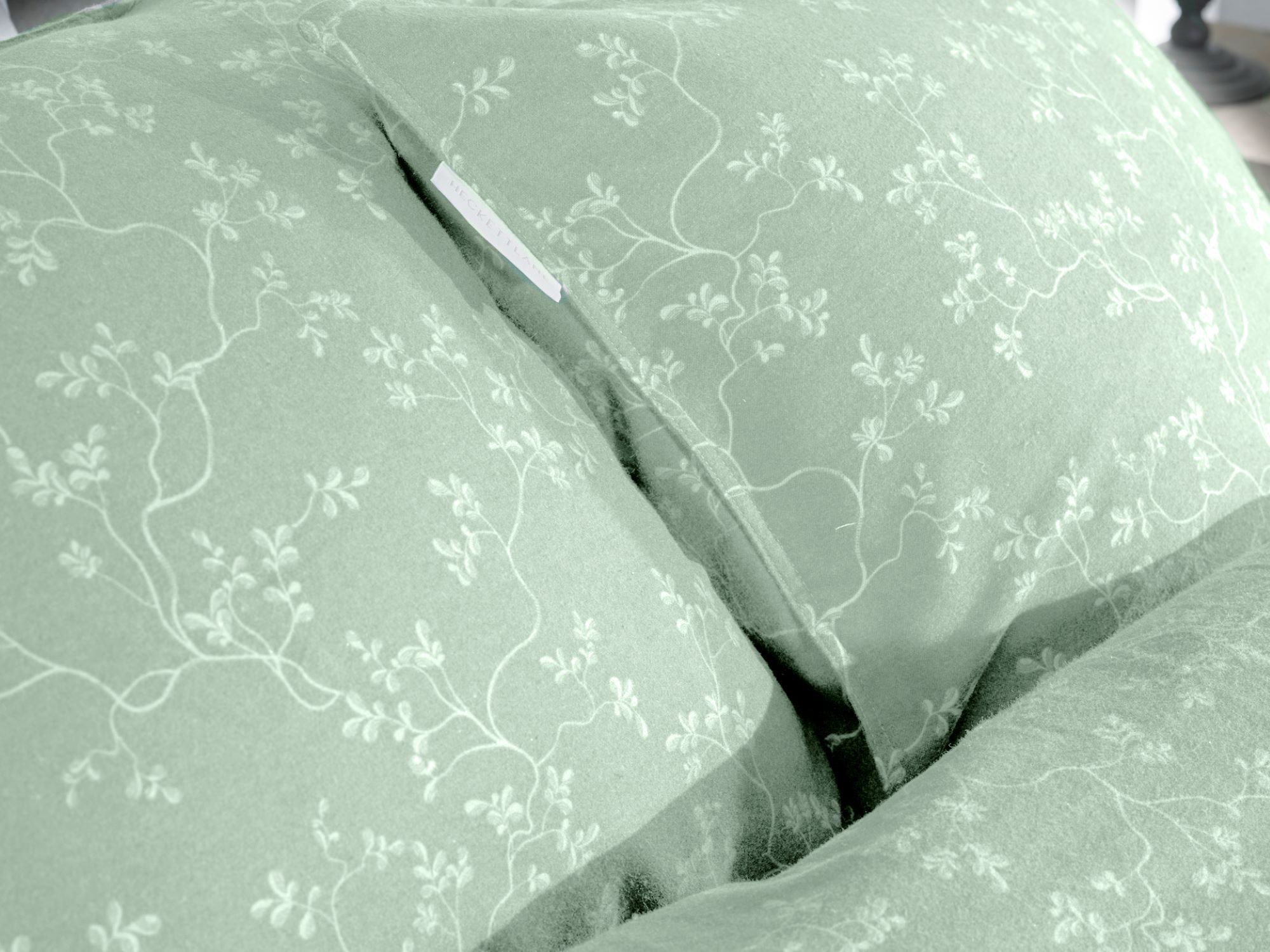 Heckett & Lane Flanell Bettwäsche 155x220 Alloro Laurel Green grün Miniblätter