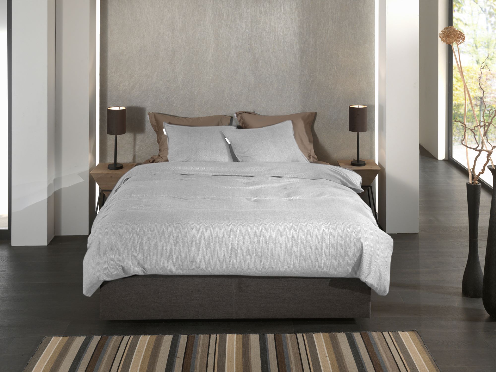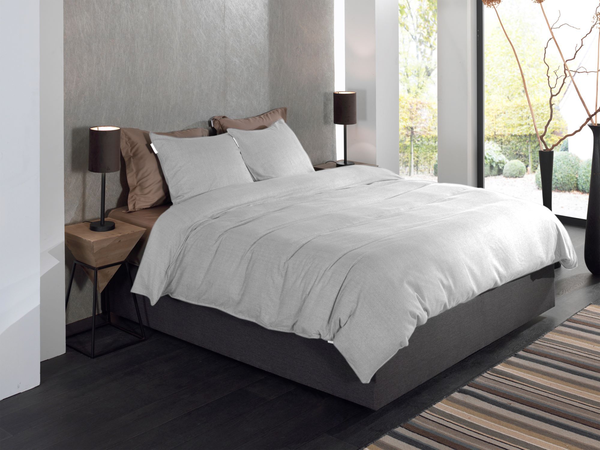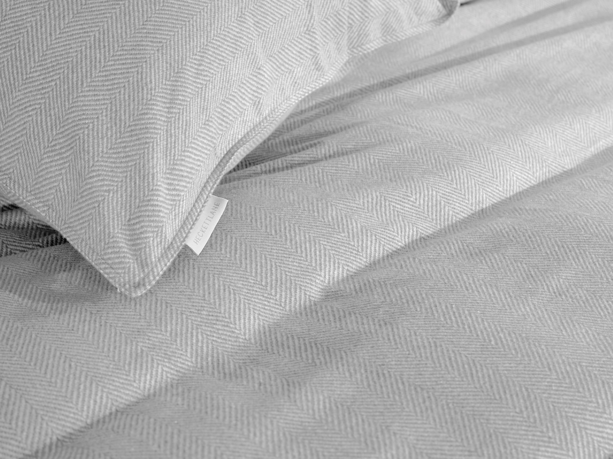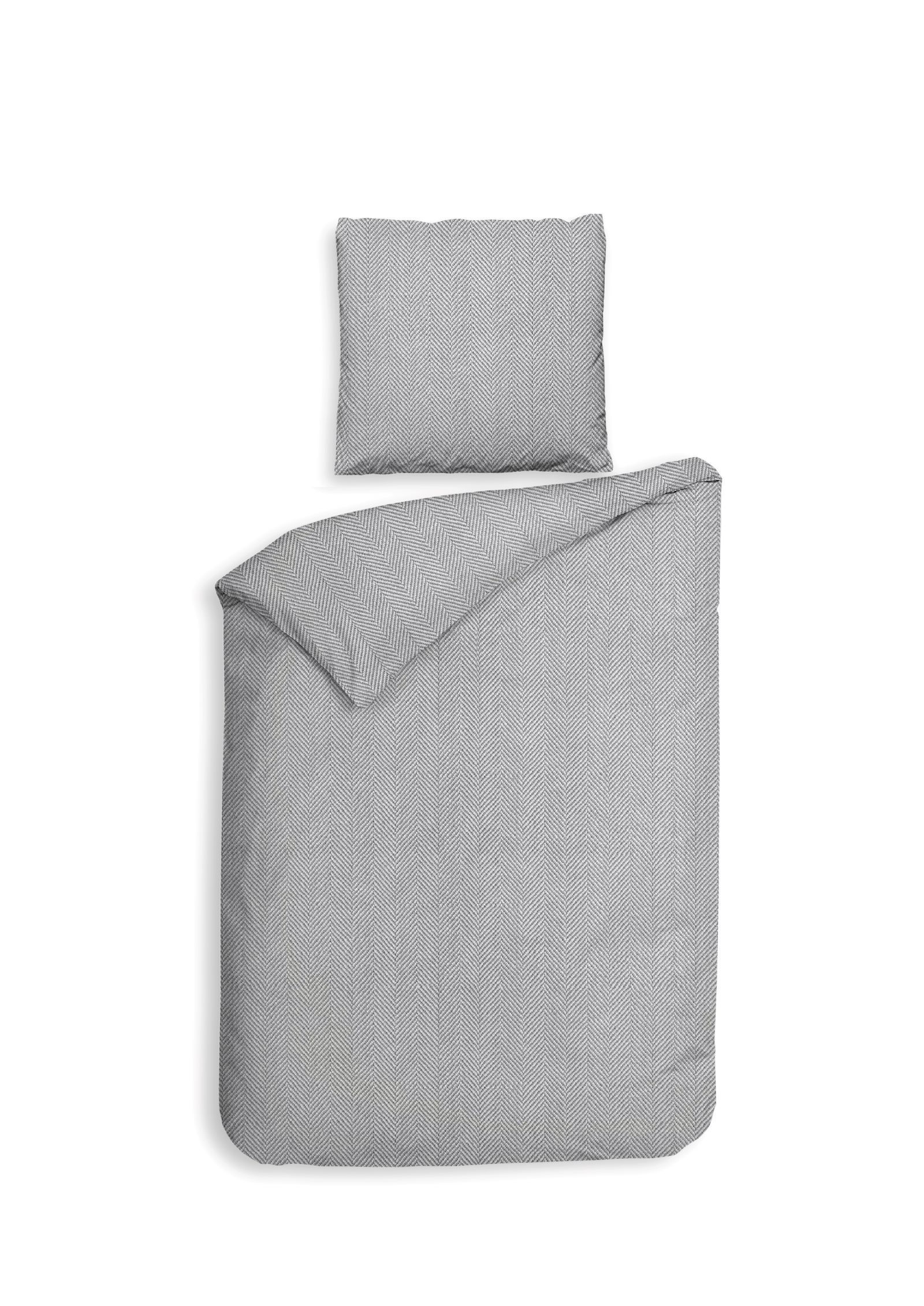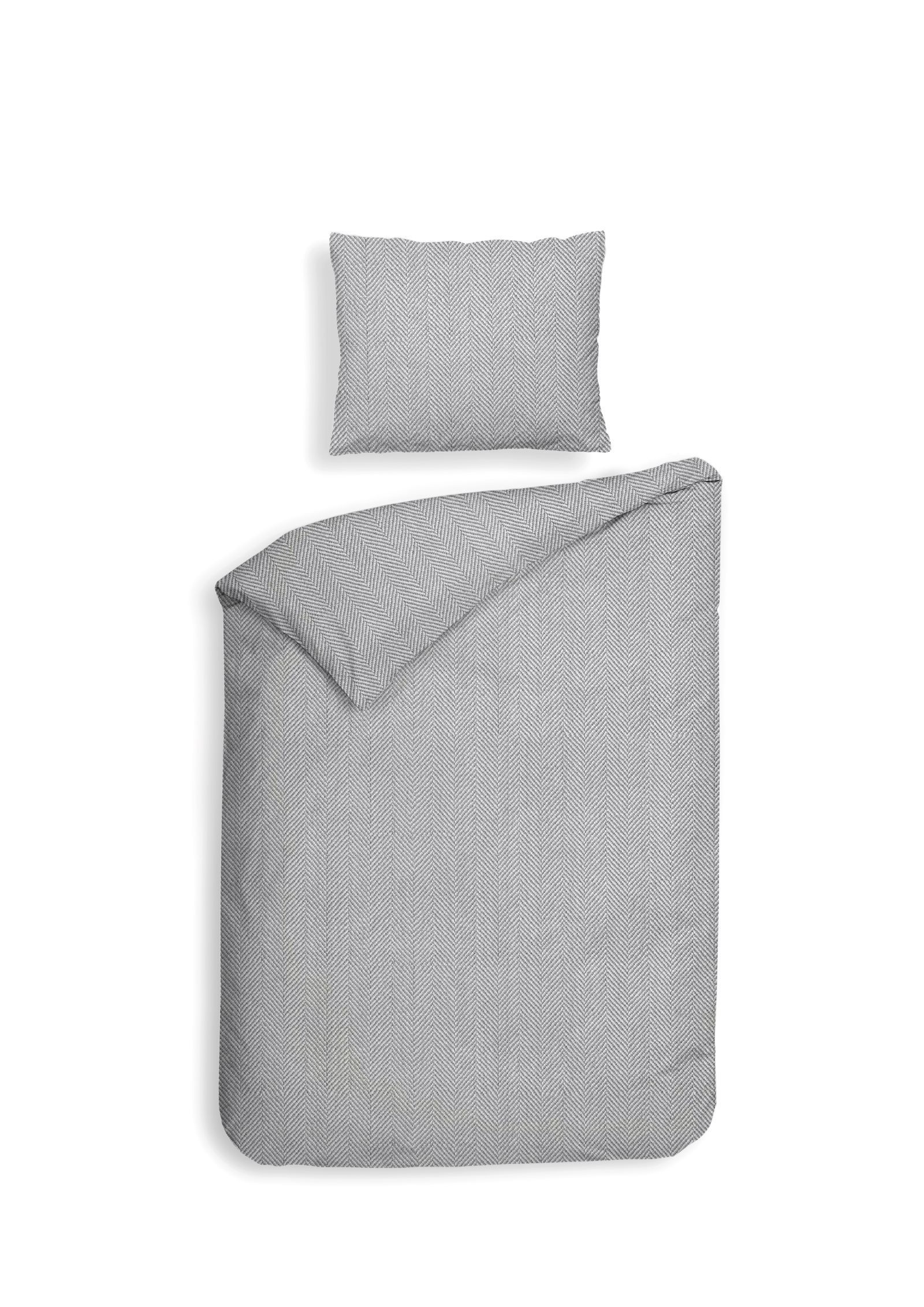 Heckett & Lane Flanell Bettwäsche 155x220 Spina Light Grey silber Fischgrät uni