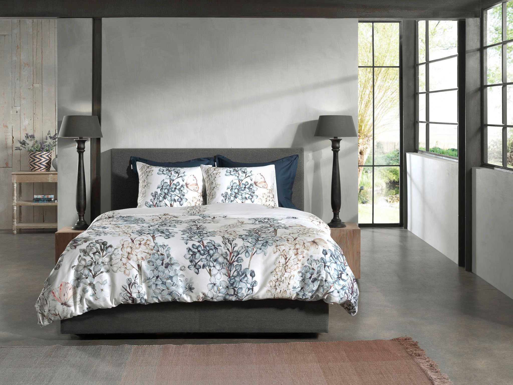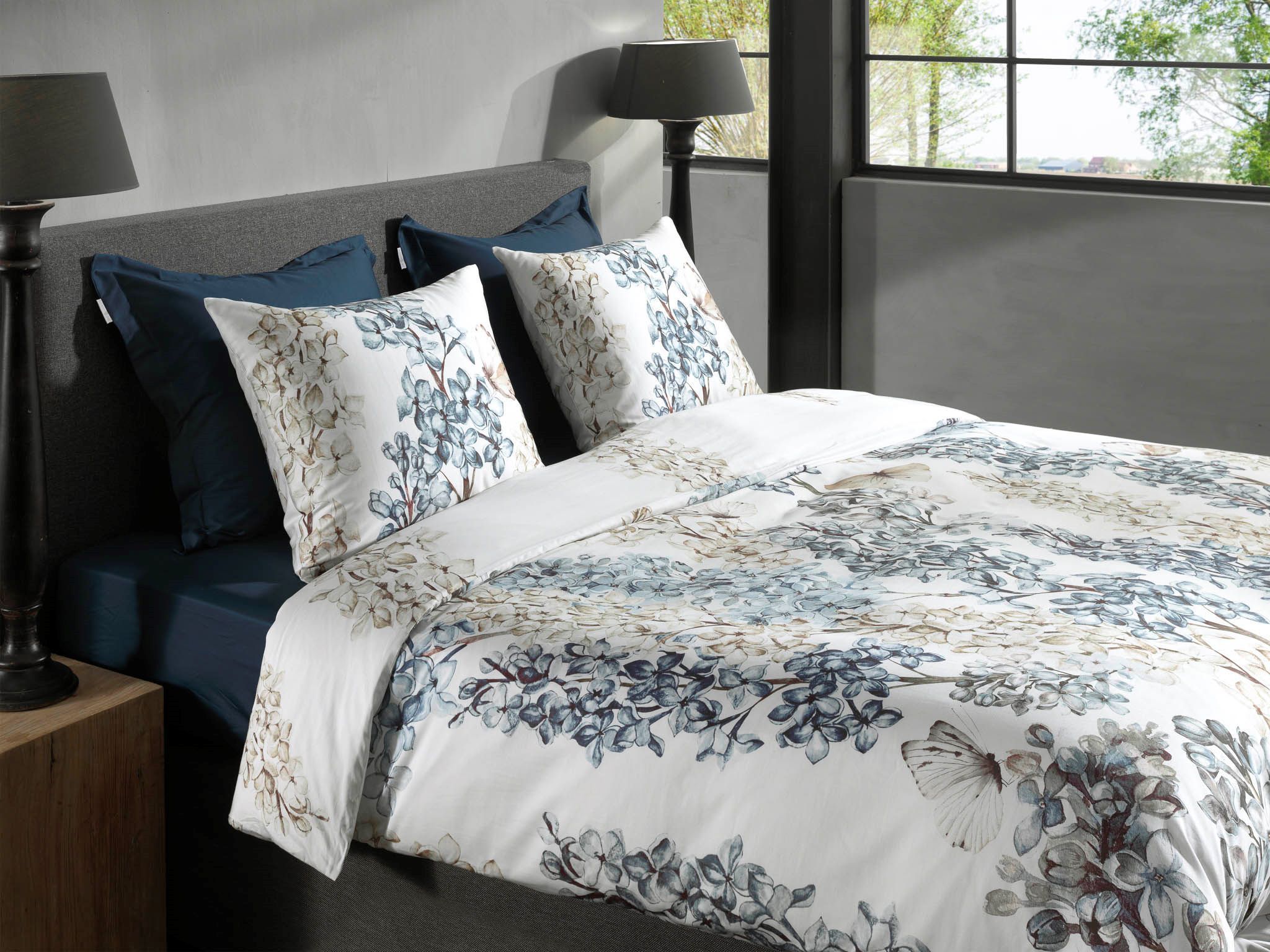 Heckett & Lane Mako-Satin Bettwäsche 135x200 Jes multi Rispen Flieder weiß blau