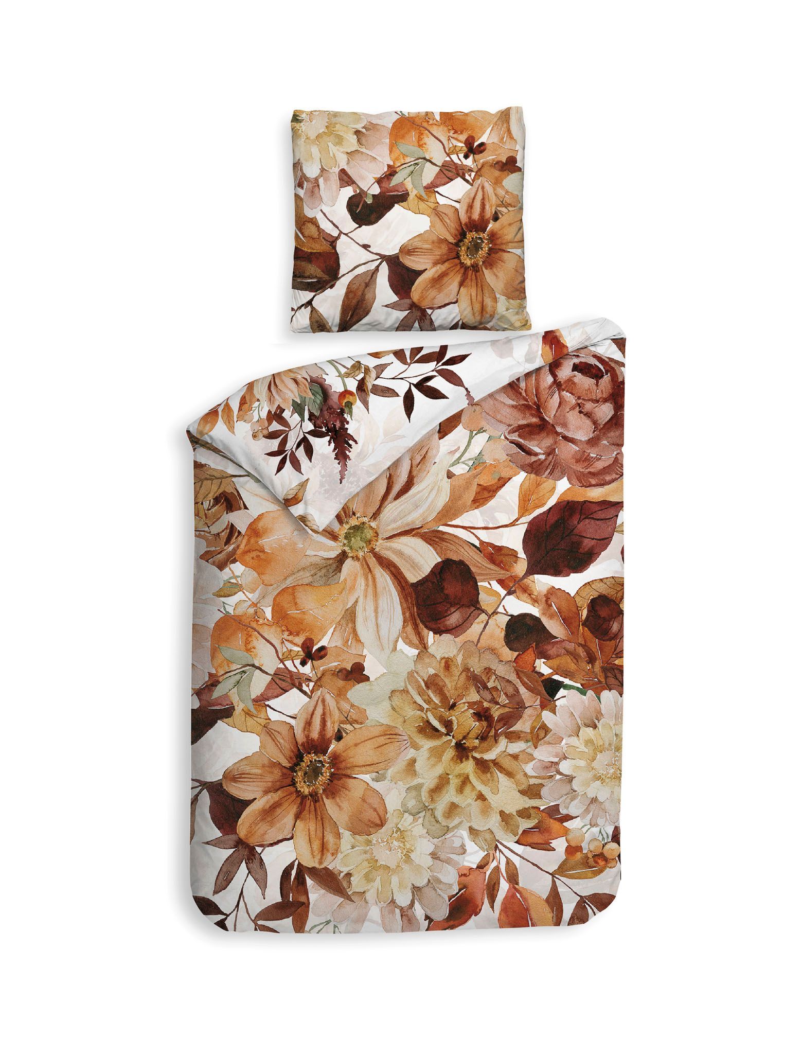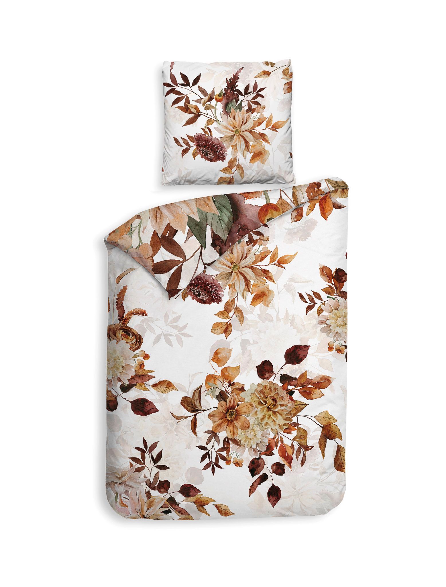 Heckett & Lane Mako-Satin Bettwäsche 155x220 Selina white Blüten Blätter Herbst