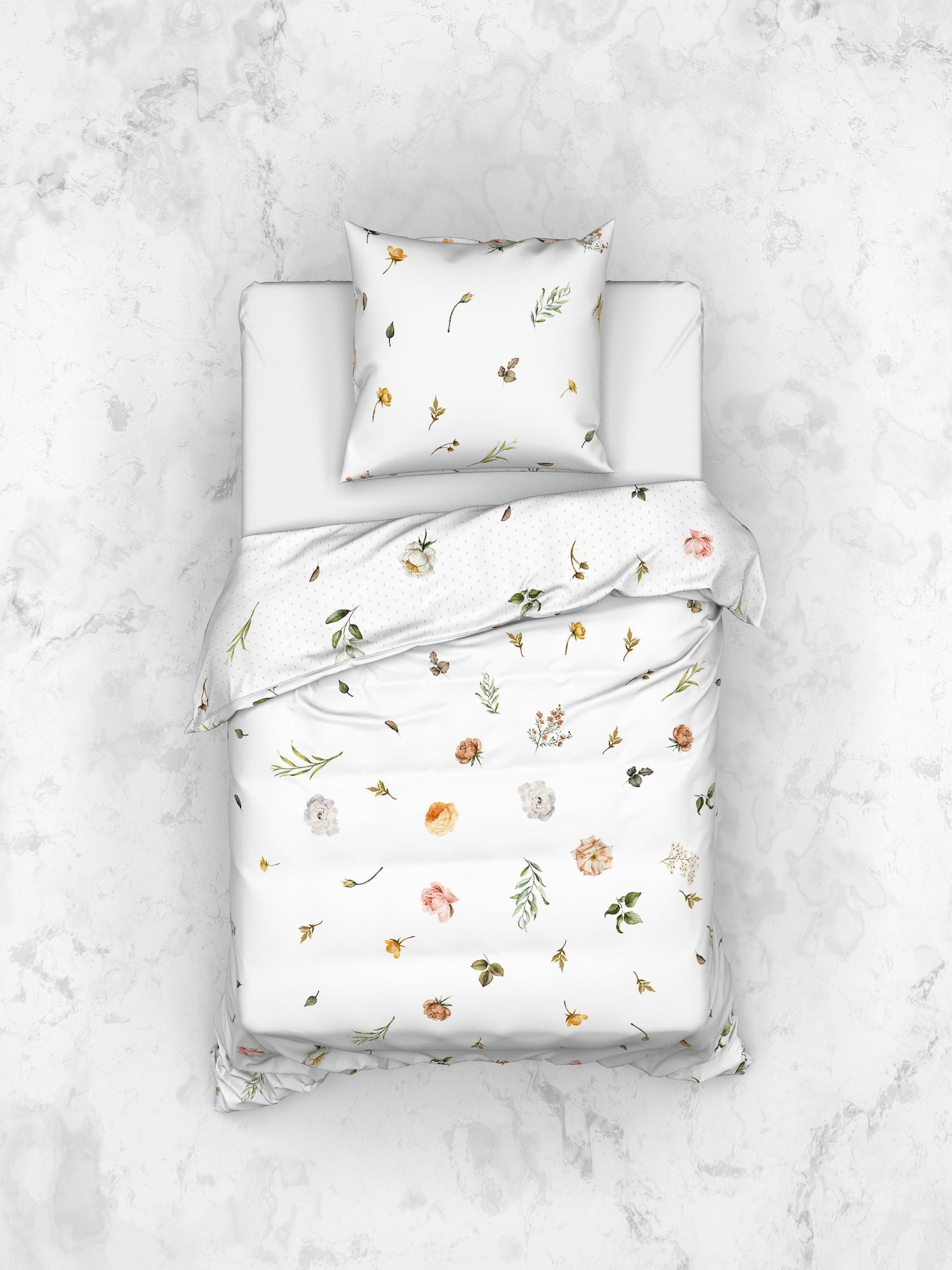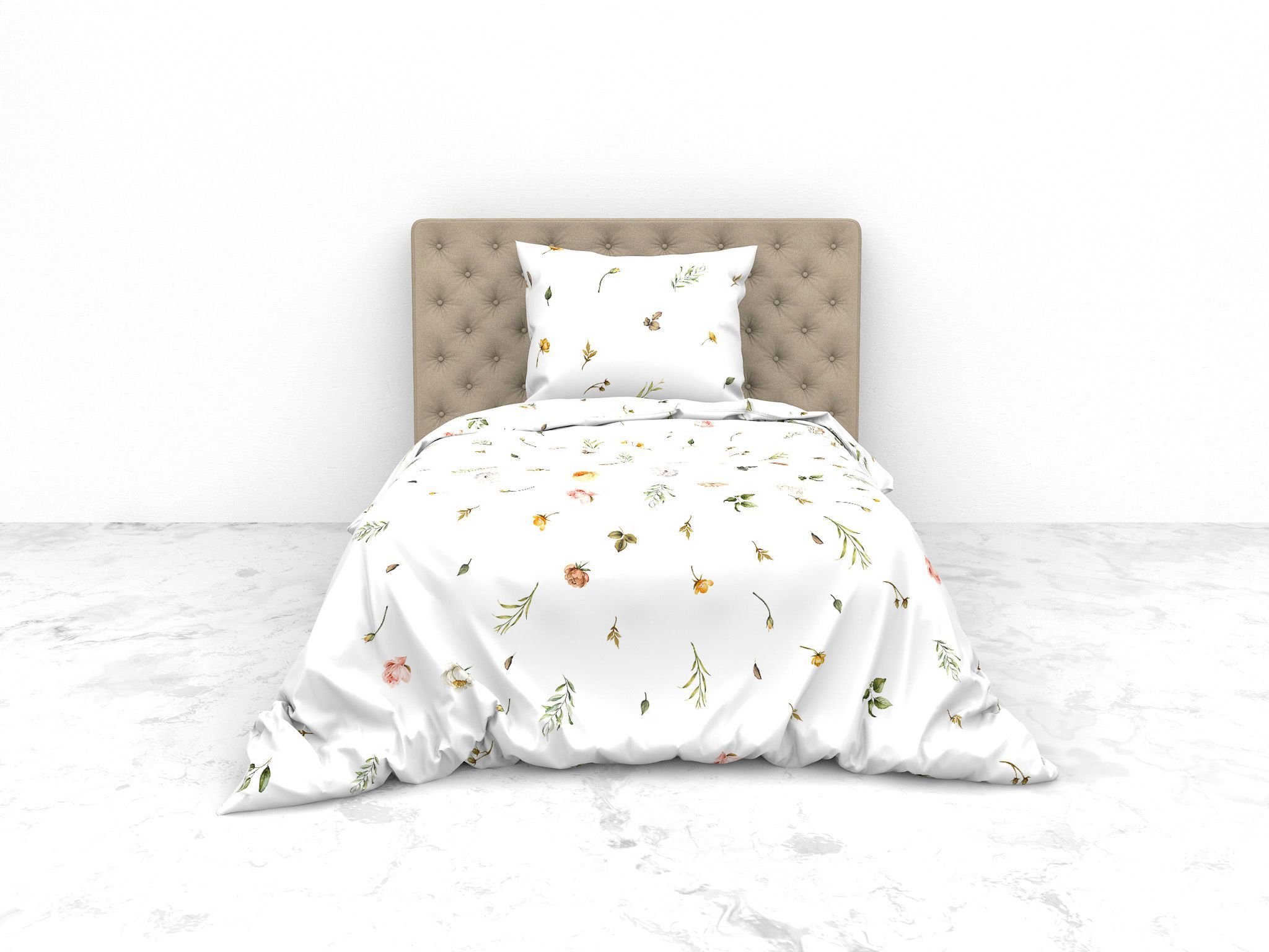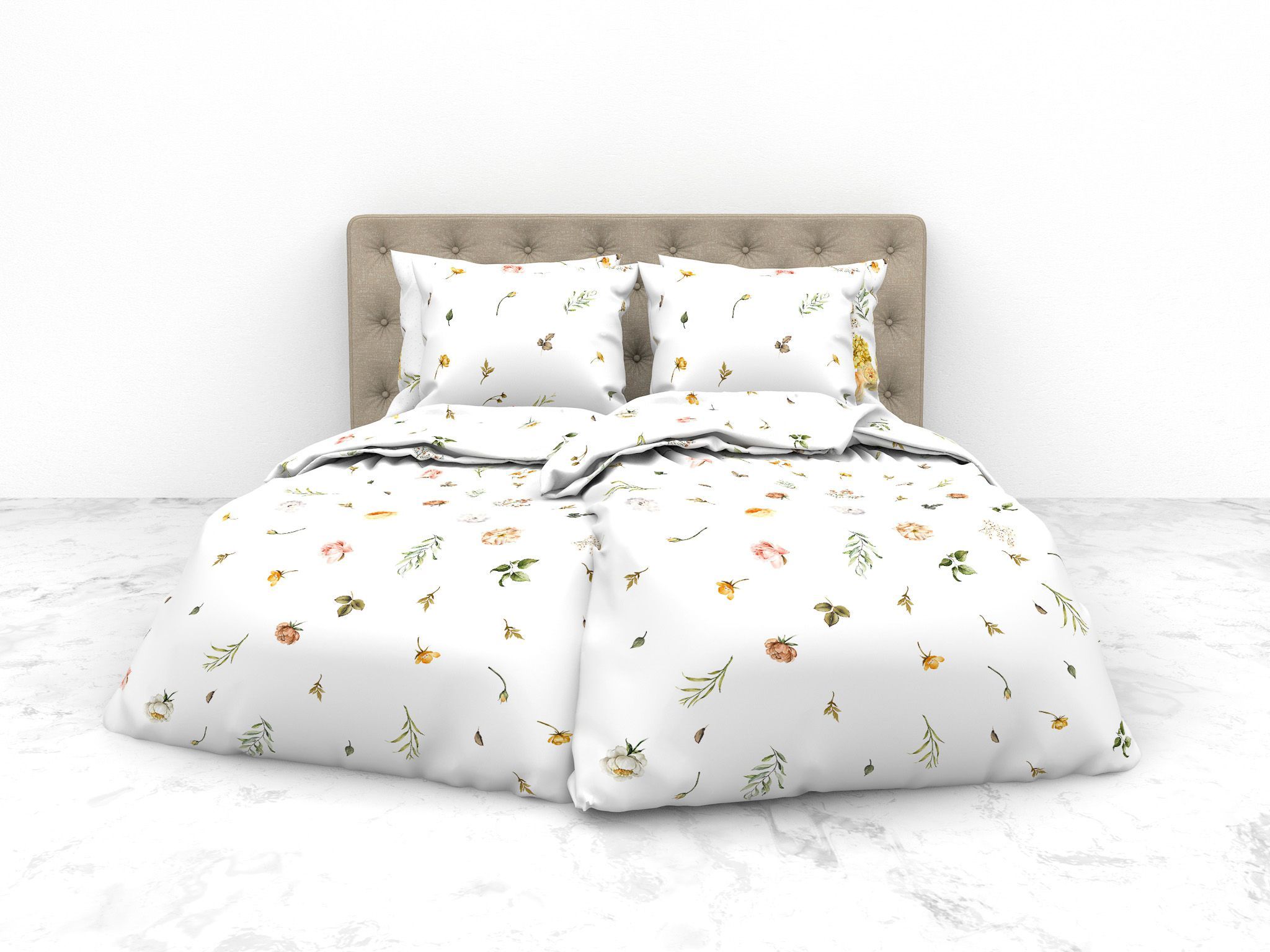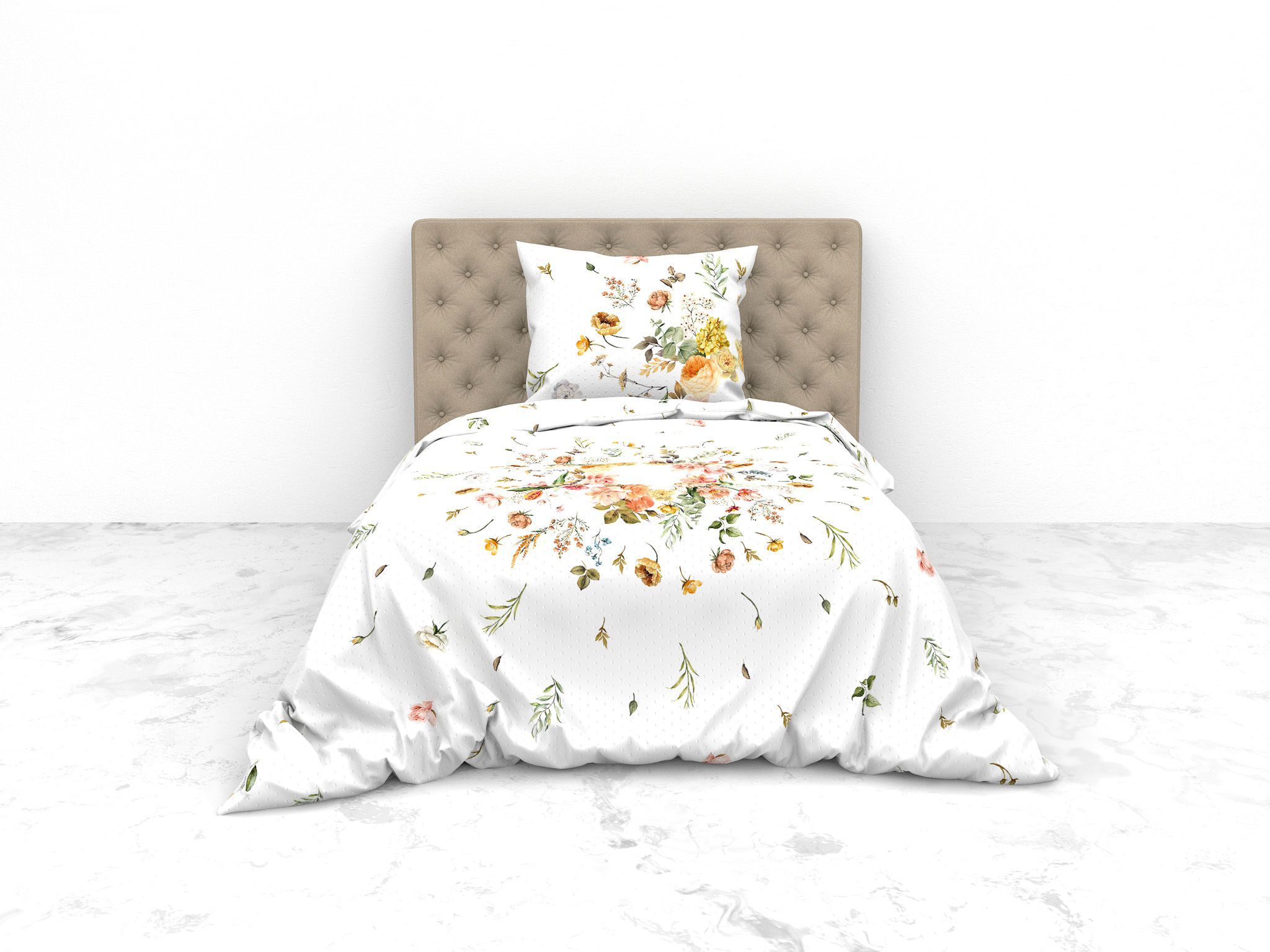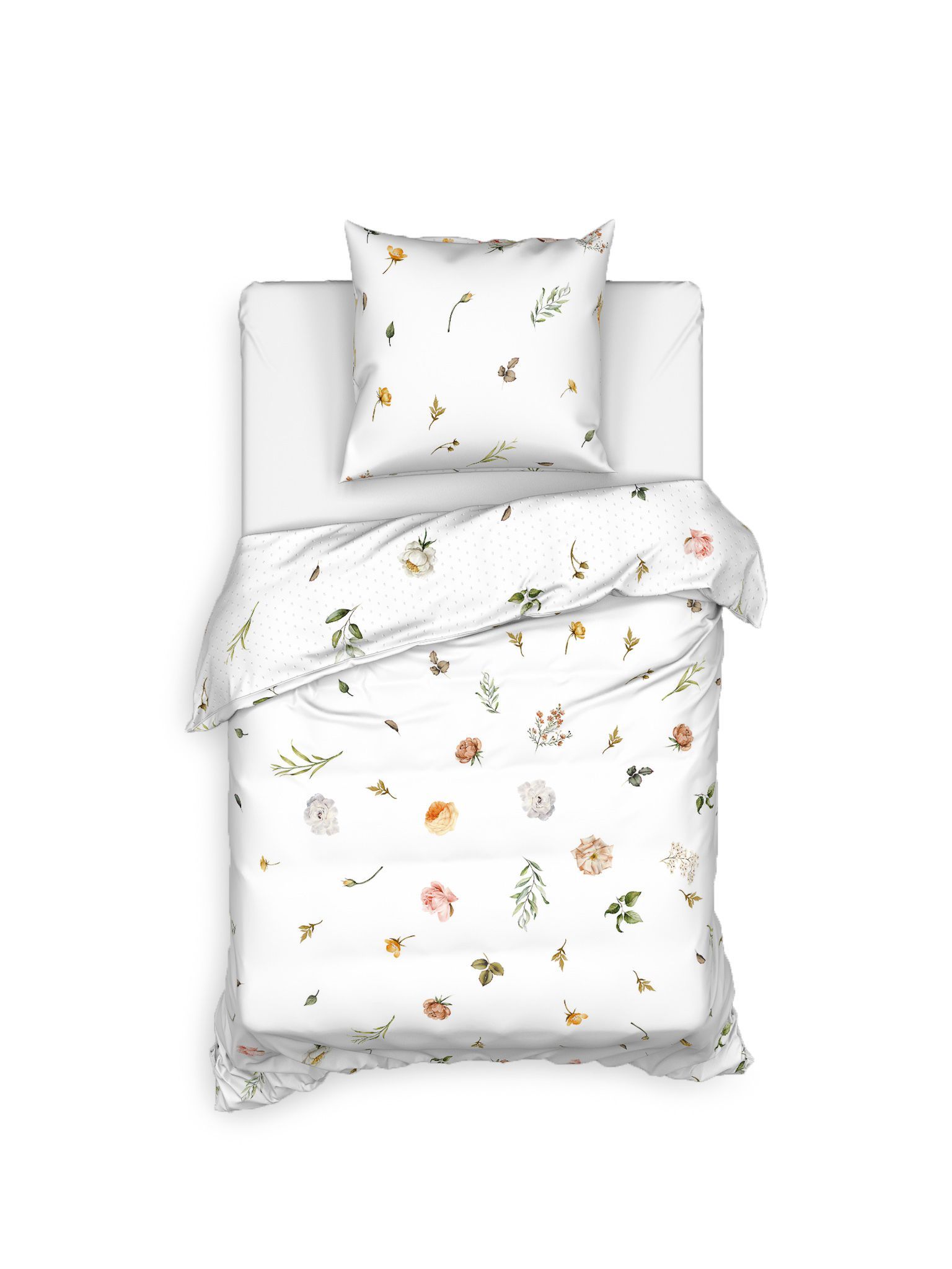 Heckett & Lane Mako-Satin Bettwäsche 155x220 Tuva White Blütenkranz koralle weiß