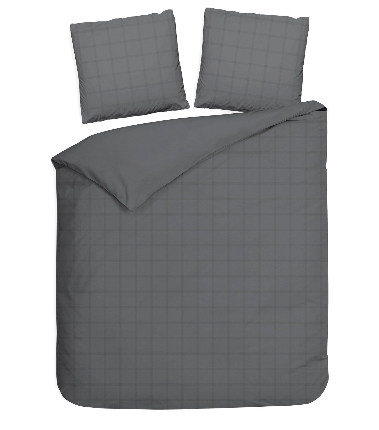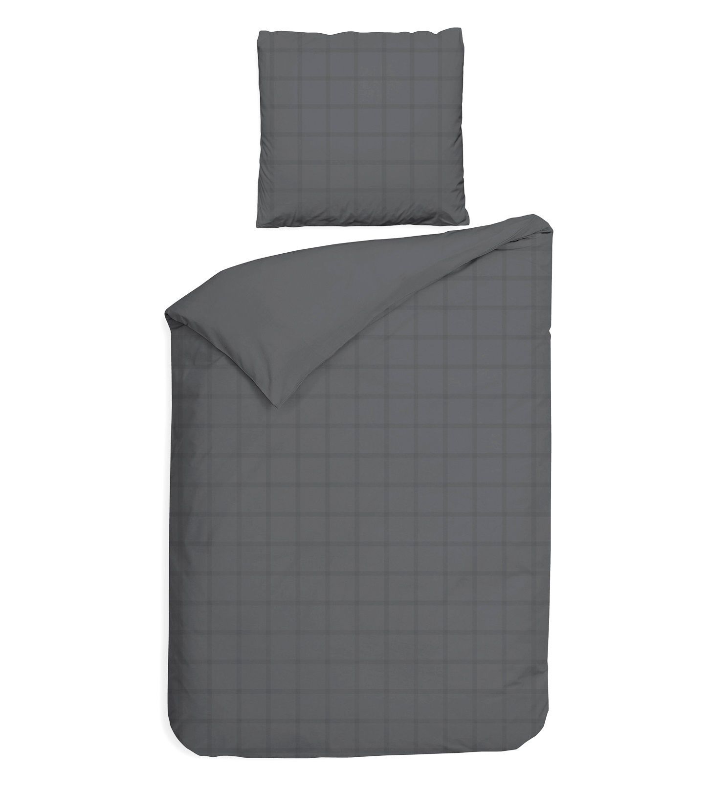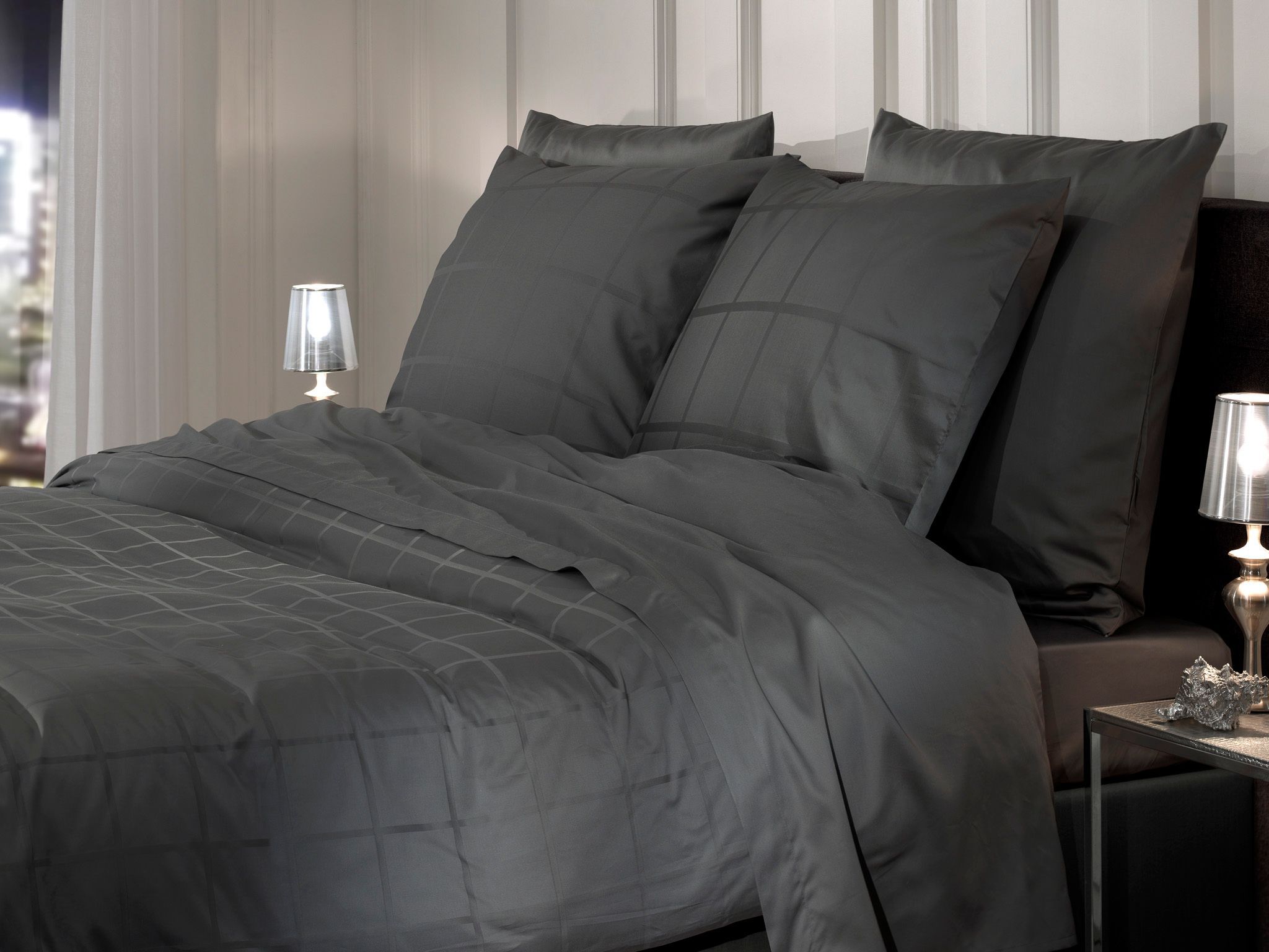 Heckett & Lane Mako-Satin Bettwäsche 200x200 Diamante Classic Anthrazit Karo uni