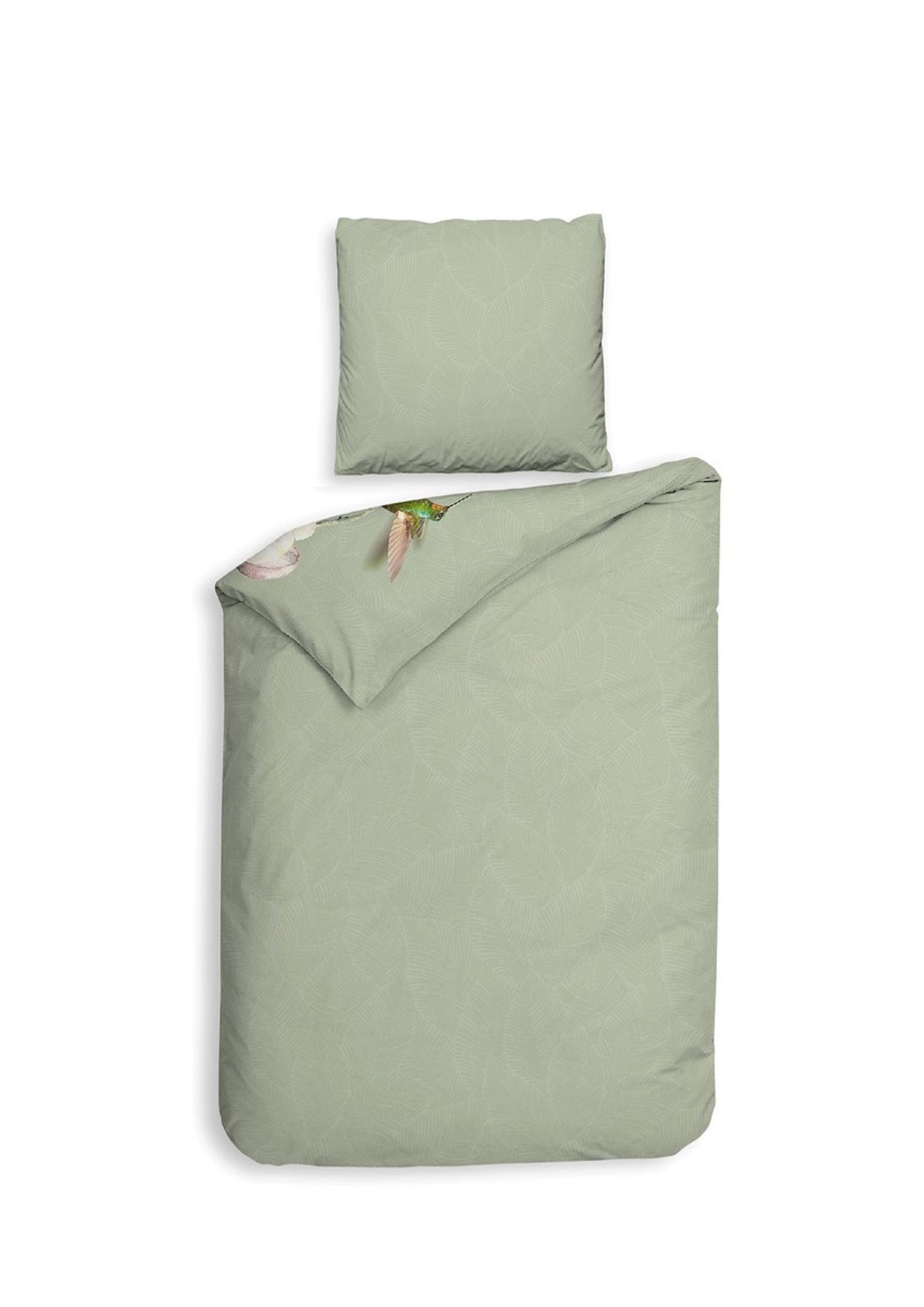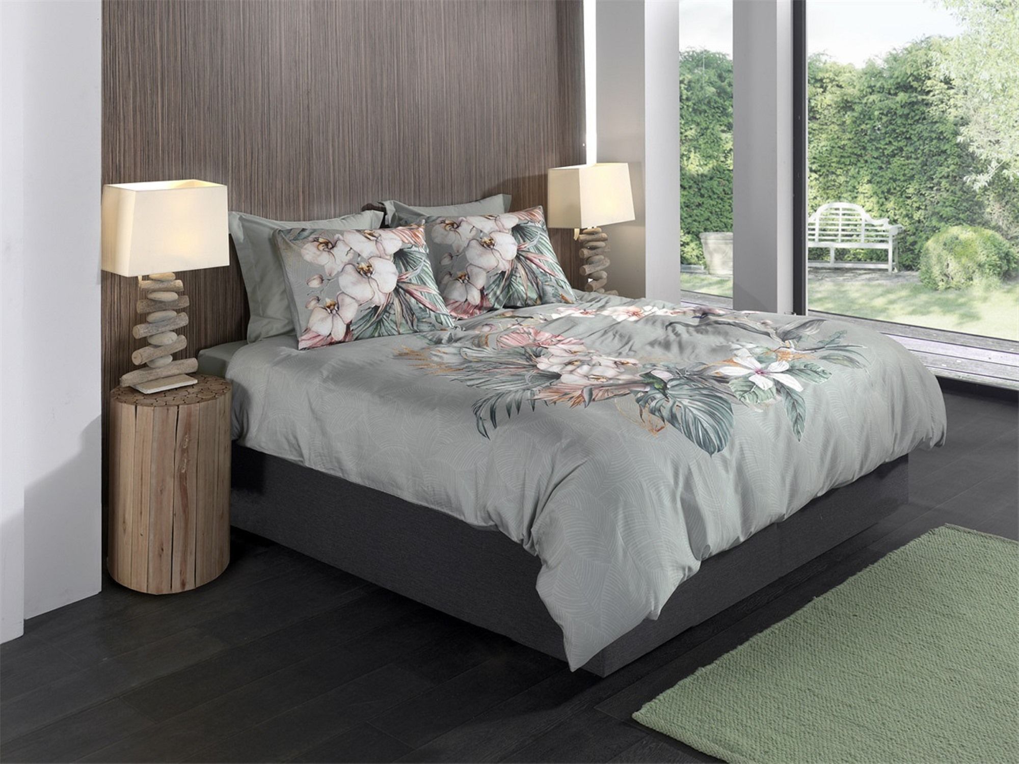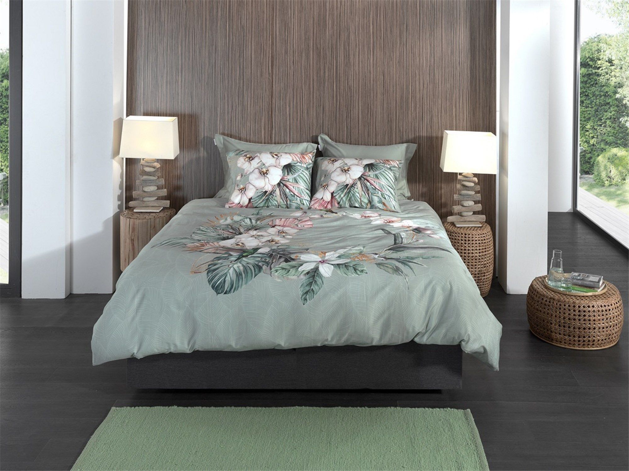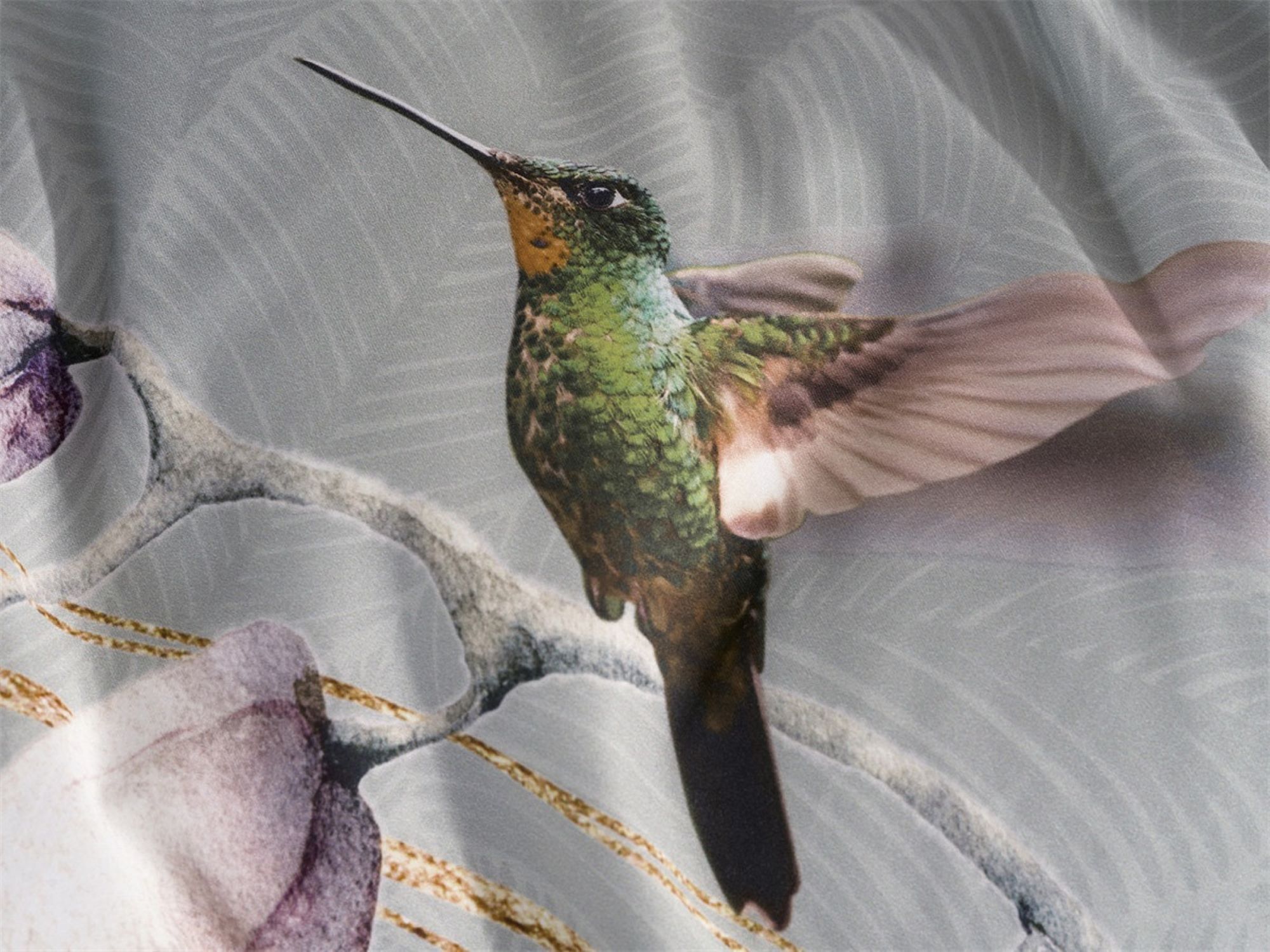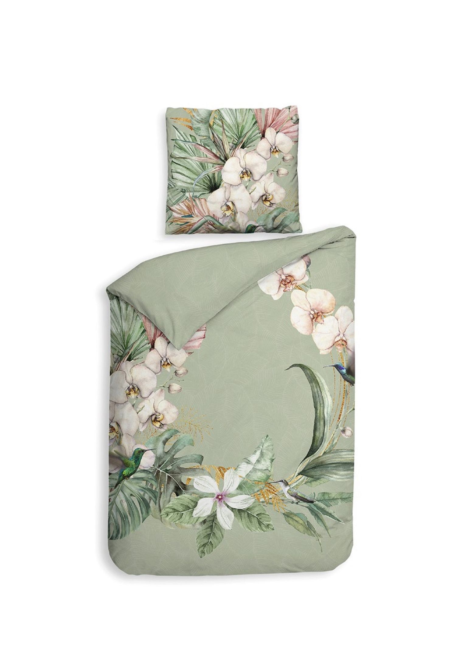 Heckett & Lane Satin Bettwäsche 135x200 Ana Green Kolibri Vogel Orchideen Blüten