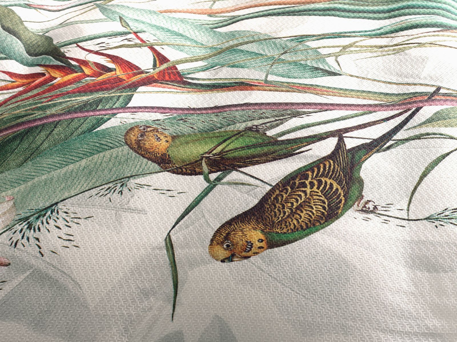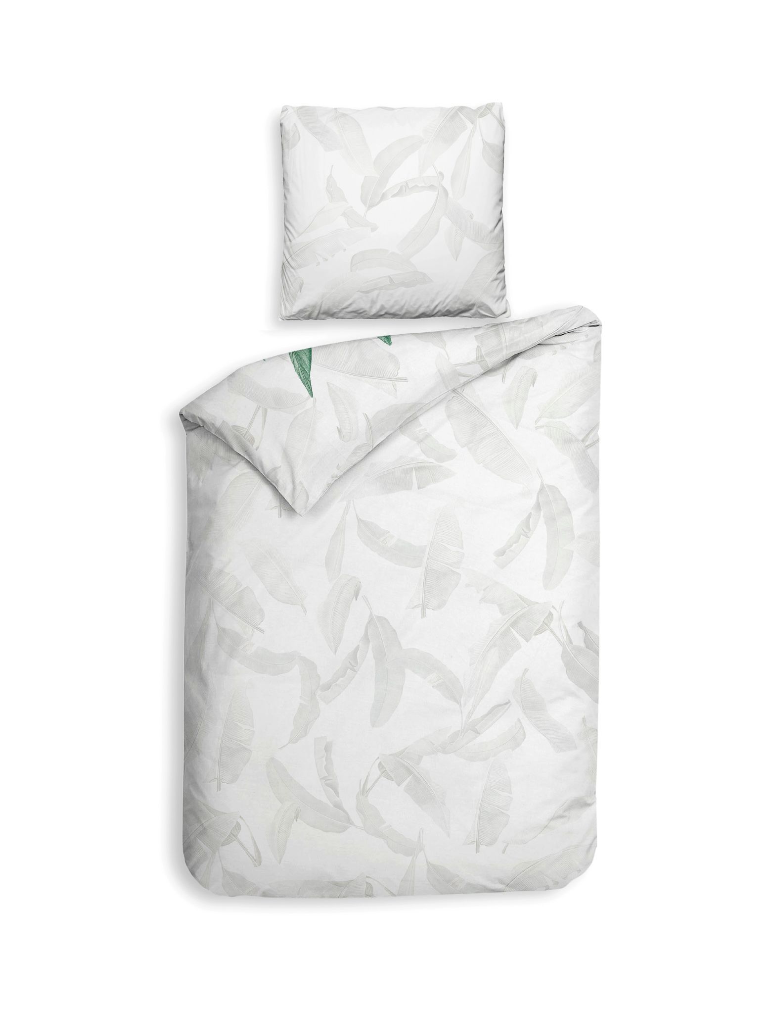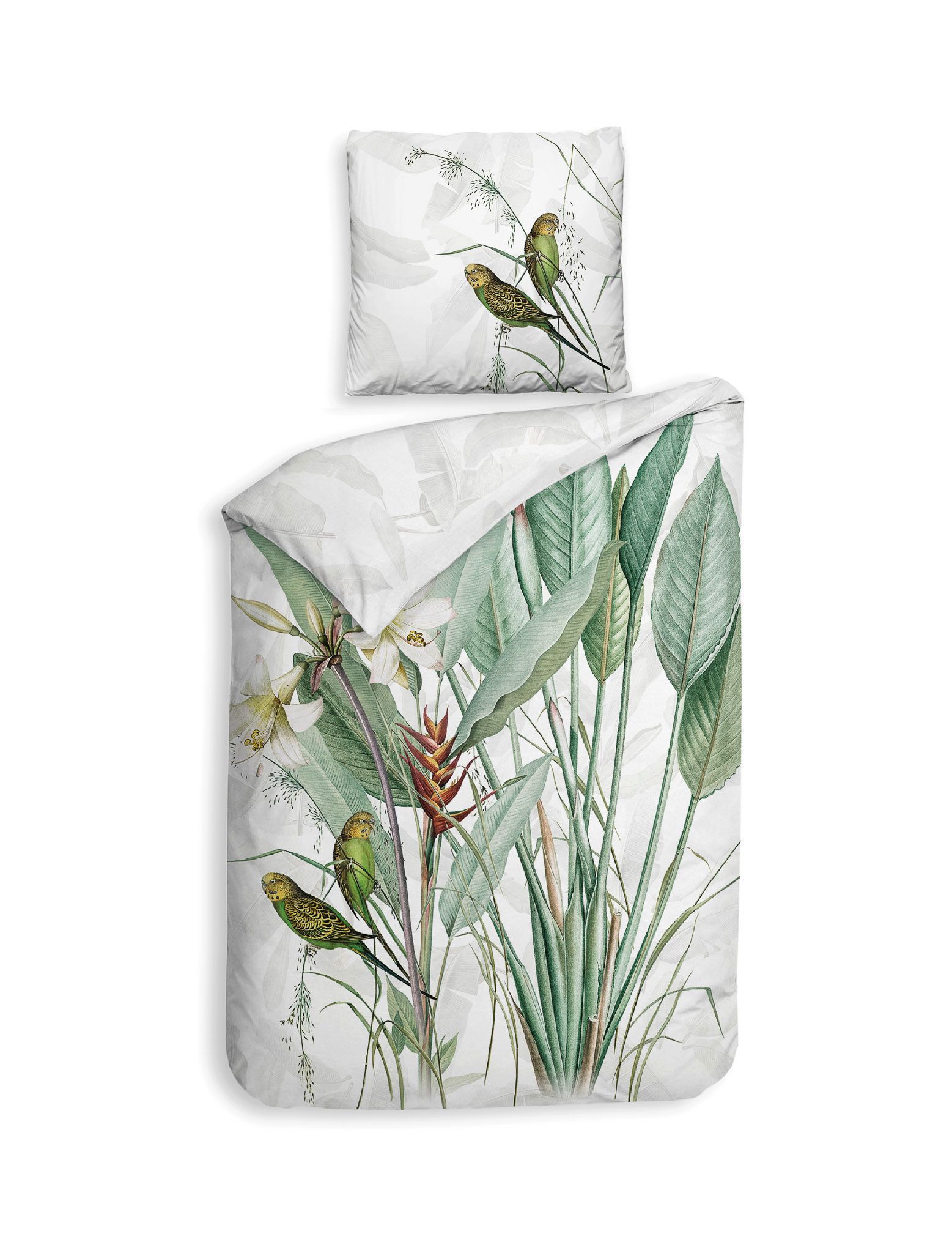 Heckett & Lane Satin Bettwäsche 135x200 Musa white Wellensittich Blätter grün