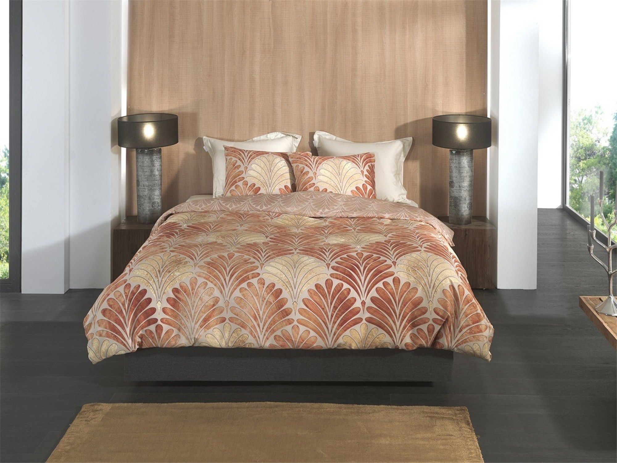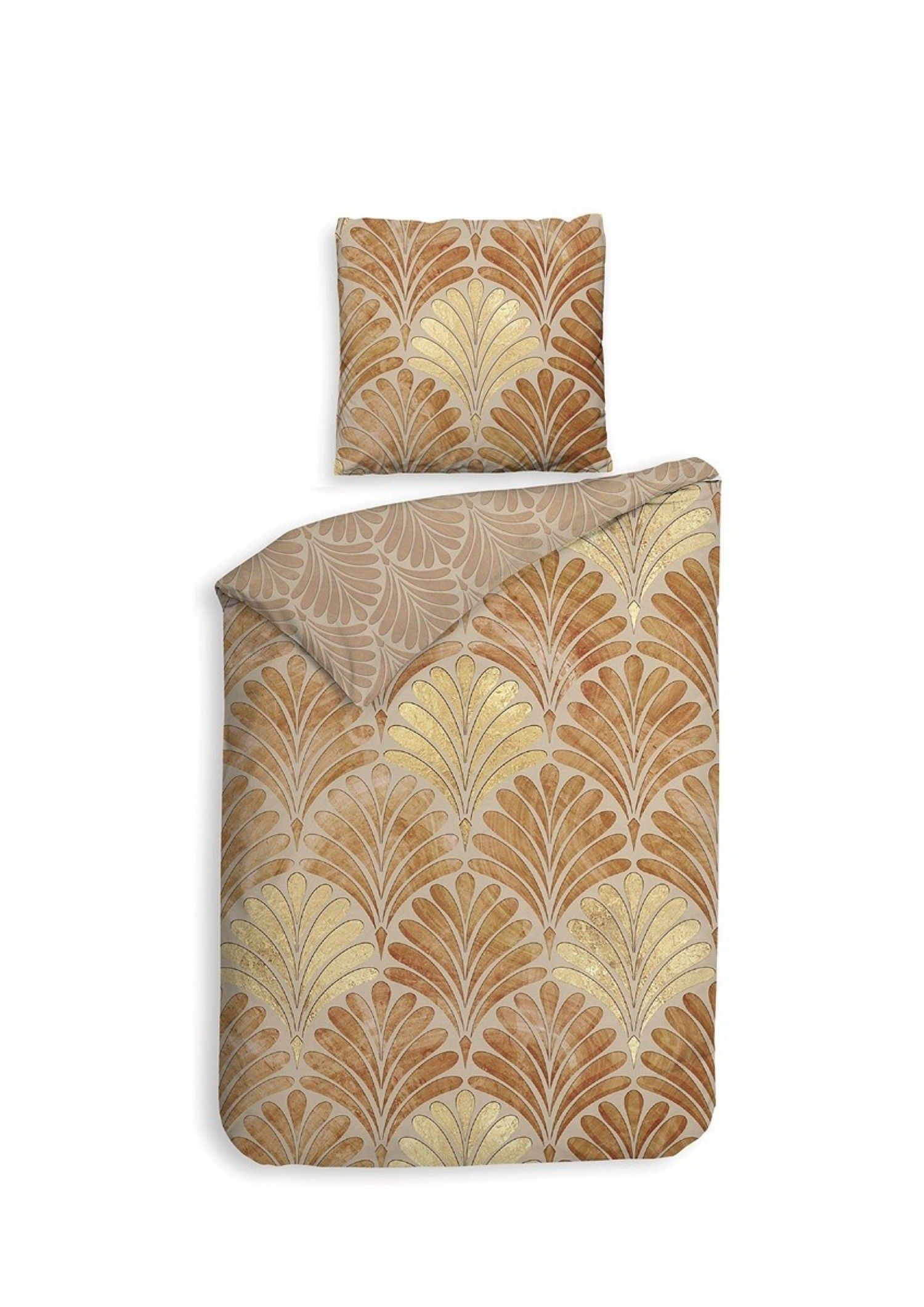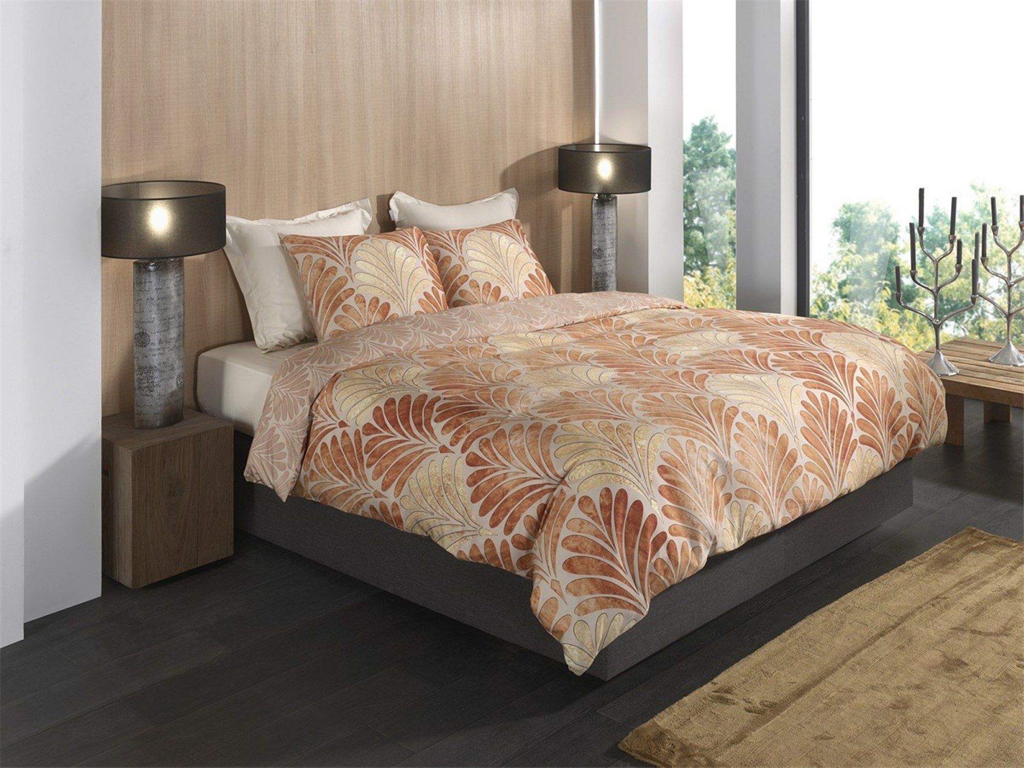 Heckett & Lane Satin Bettwäsche 155x220 Elif orange Blätter Muschel beige Wende