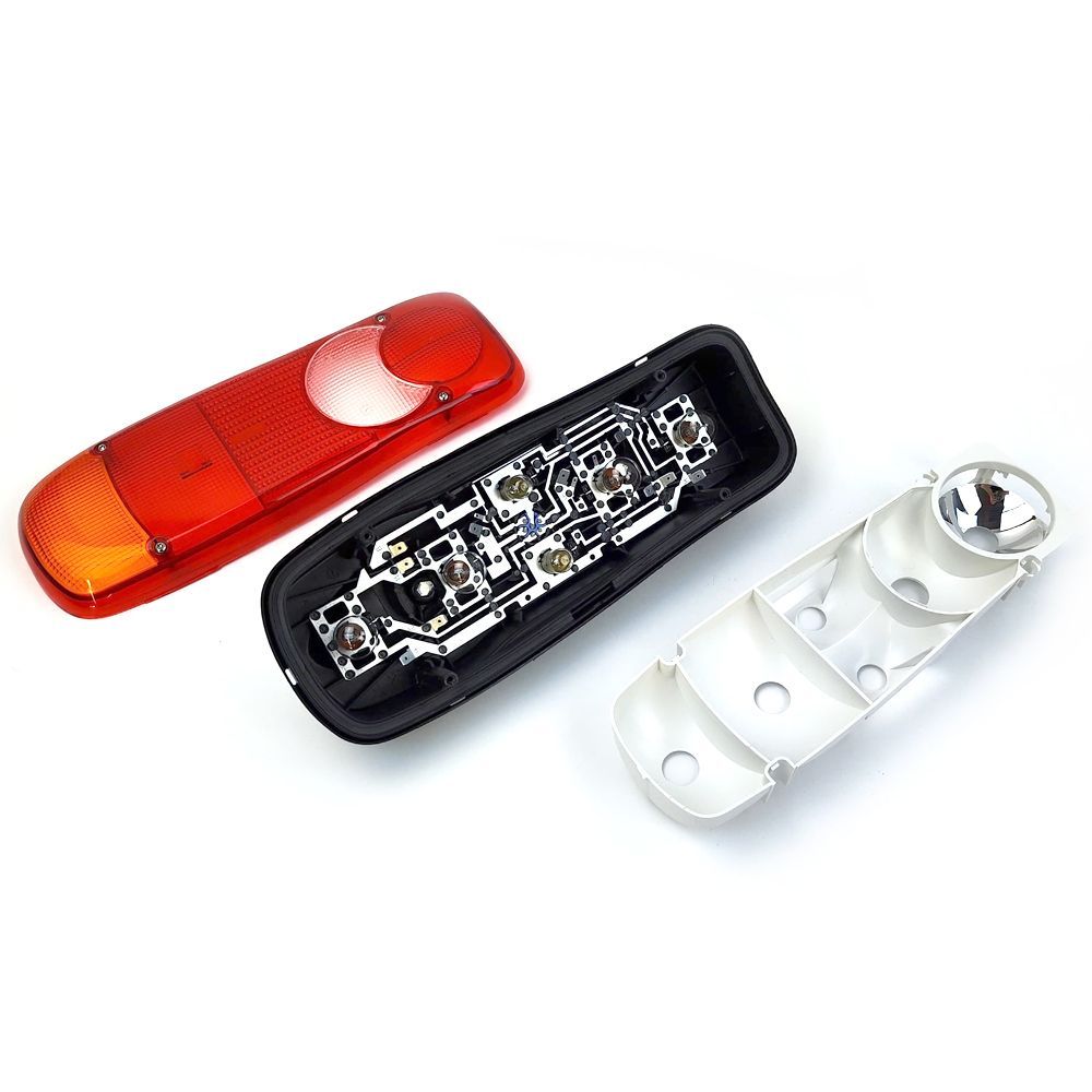 Original Heckleuchte rechts oder links für Pritschenfahrzeuge – mit Lampenträger Anschluss: Rundstecker 6 PIN Befestigung: 2 Stehbolzen Ergänzungsartikel: Mit Lampenträger und Glühbirnen Zustand: Neu OE- OEM-Referenznummern (zum Vergleich): 1401731 791123 26555-9X125S 4421265 4421266 265500292