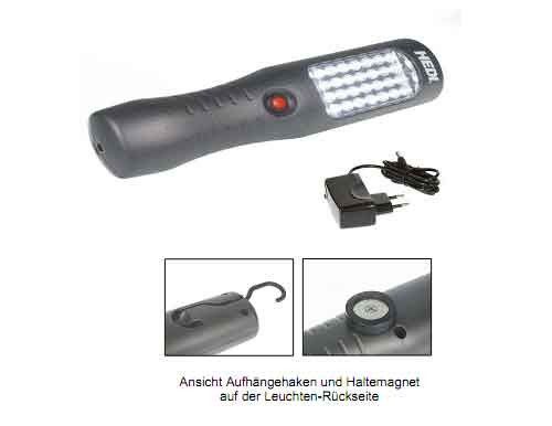 HEDI - Akku-LED-Handleuchte praktische, stoßunempfindliche Akku-Handleuchte für den flexiblen Einsatz in Werkstatt und Lager, bei Installationsarbeiten oder Reparaturen aufgrund seiner geringen Größe kann die Leuchte gut in Hosen- und Jackentaschen eingesteckt werden die 28 weißen LED sorgen dabei f