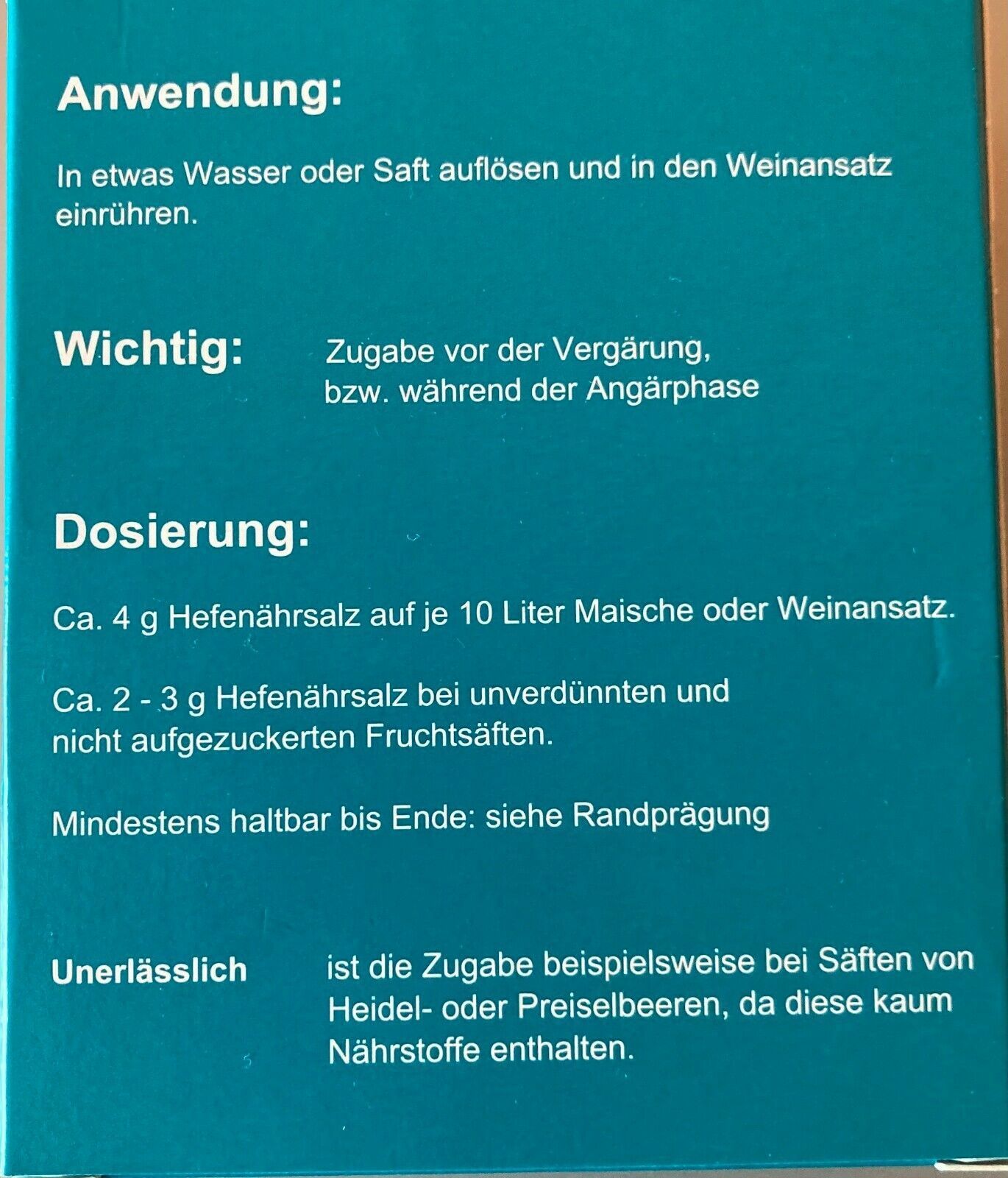 Hefenährsalz Gärsalz 10 X 10 gr. Portionsbeutel für 250 Liter Most oder Maische